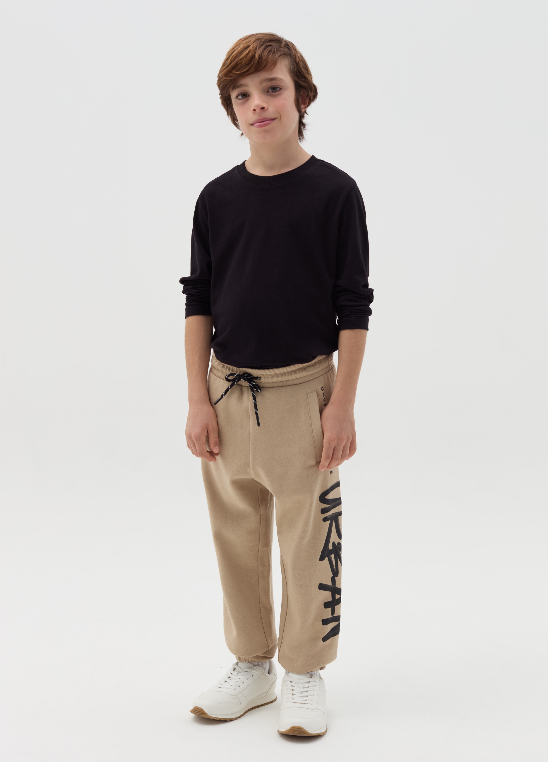 Casual pants in brown sweatshirt, perfect for autumn and winter. With adjustable waist and decorative print. Comfortable and fashionable, ideal for a casual and trendy look on every occasion. A versatile and quality garment for a modern and fashionable man.