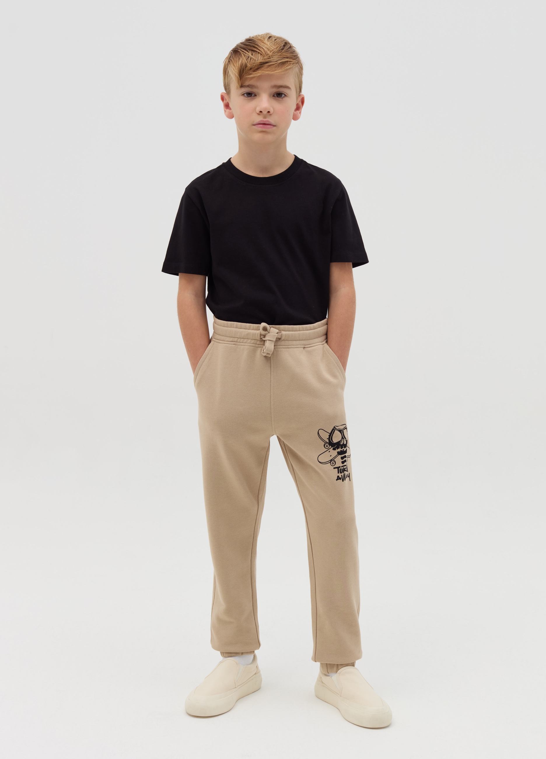Joggers in sweatshirt with brown print, perfect for autumn and winter. Made of soft and comfortable fabric, these pants are ideal for a casual and trendy look. The brown color is easily matched with other clothing and shoes. Comfortable and modern fit, suitable for every informal occasion.
