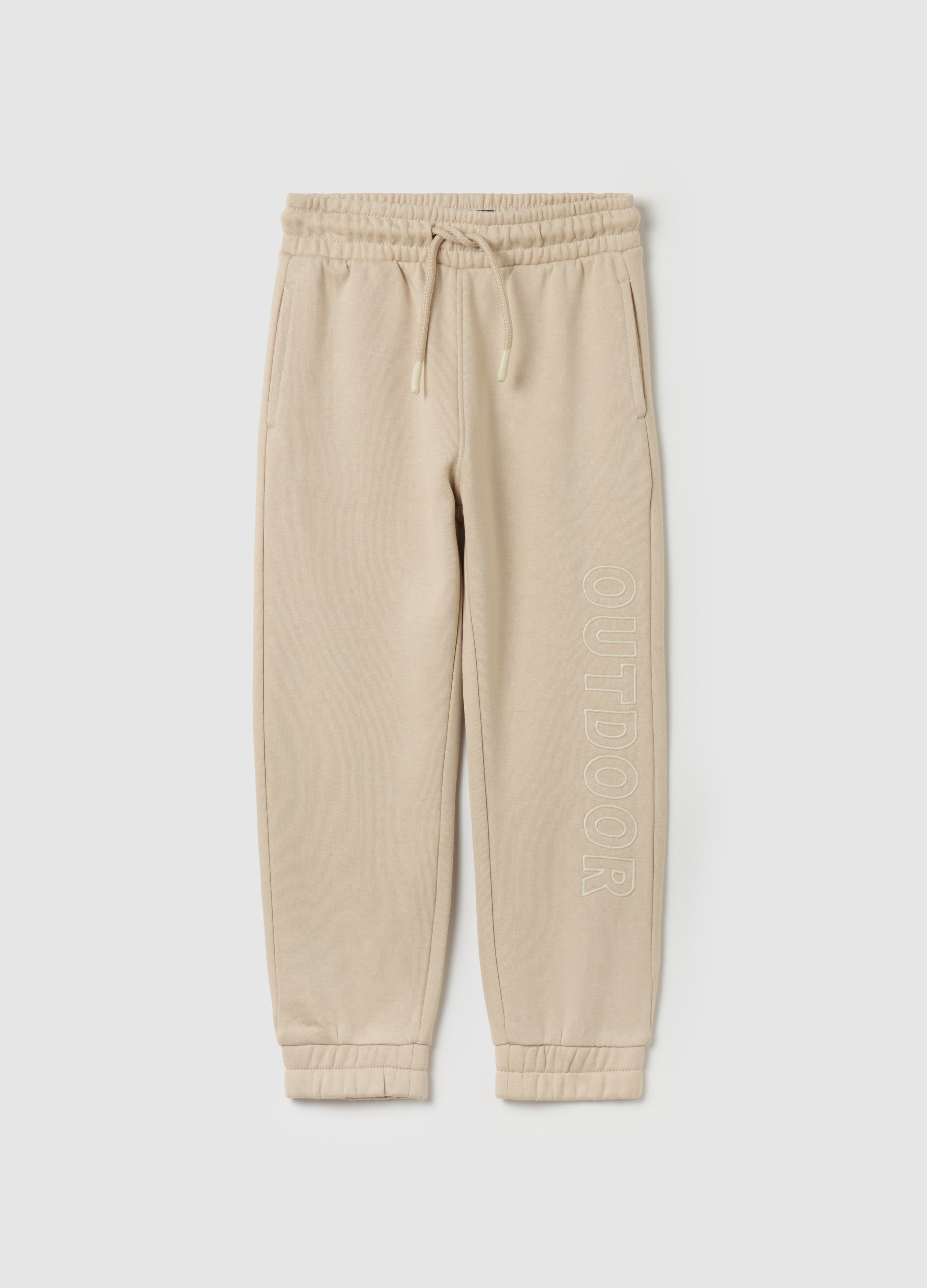 Casual beige pants with coulisse and lettering print, ideal for autumn/winter. Made of comfortable and durable fabric, these joggers are perfect for a casual and fashionable look. Modern design and attention to detail make them a versatile garment suitable for various occasions. Complete your outfit with these comfortable and fashionable pants.