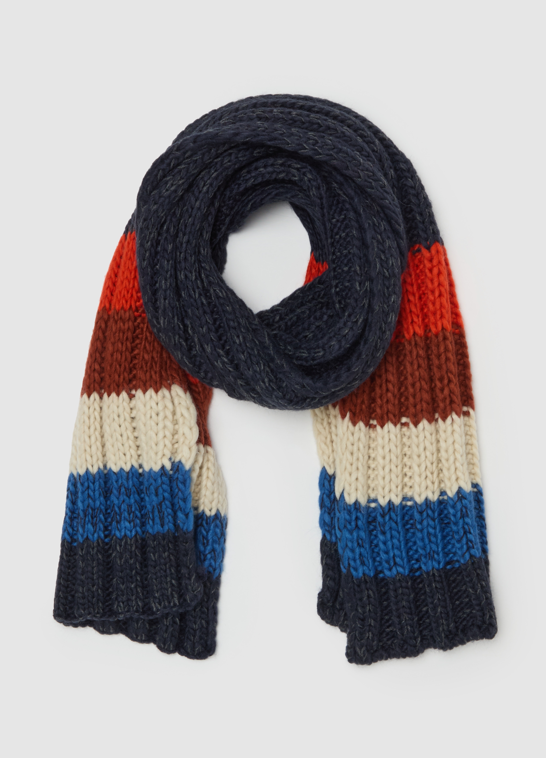 Knit scarf with multicolored men's striped pattern, perfect for winter. Made of warm and soft fabric, suitable to complete your casual look. One size, ideal for every day. A must-have accessory to face cold with style.