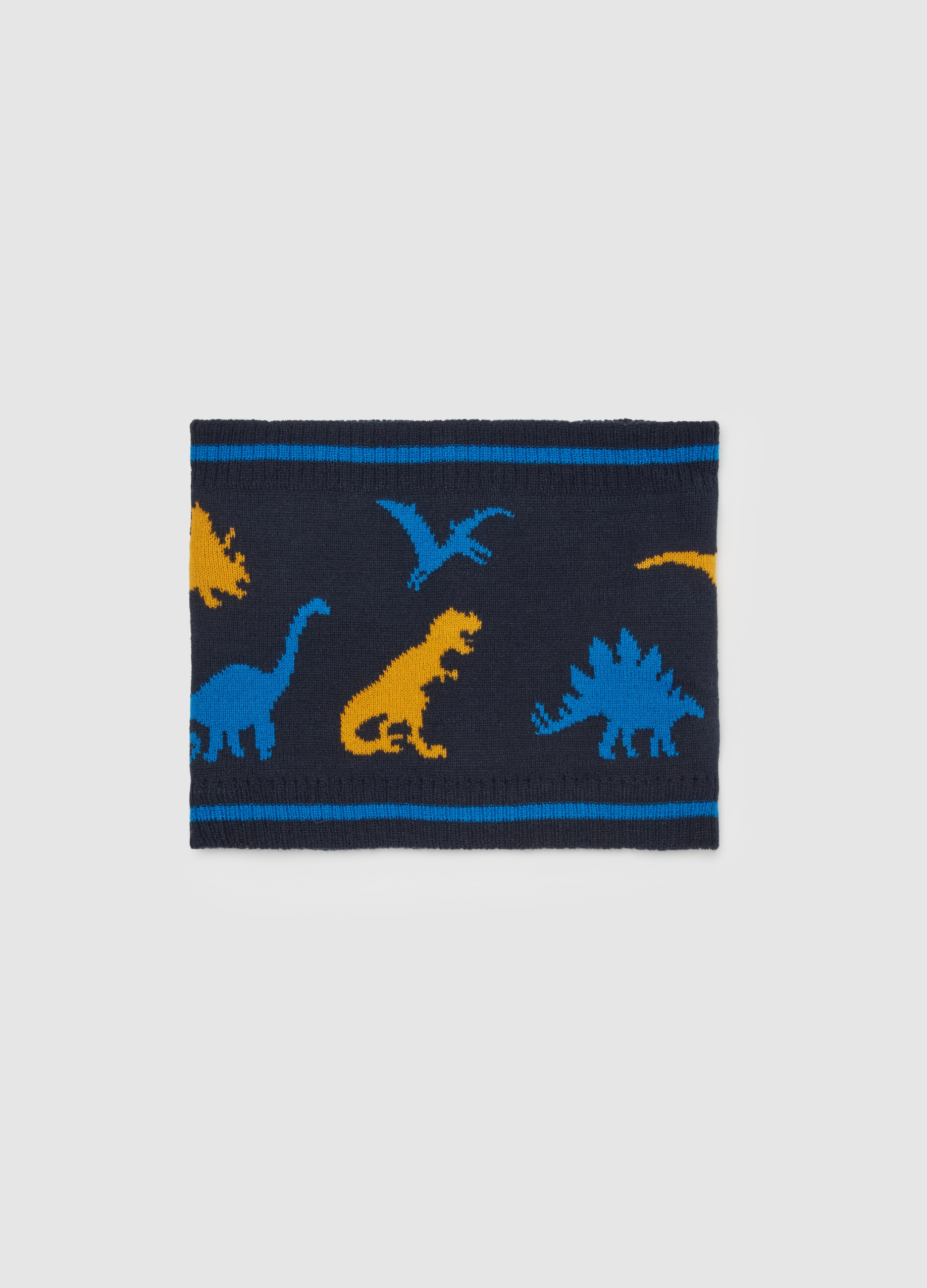 Men's casual warmer ideal for winter. Made of soft blue fabric with jacquard dinosaur design. Perfect to protect the neck from cold with style and originality. A fashionable accessory to match any casual outfit.