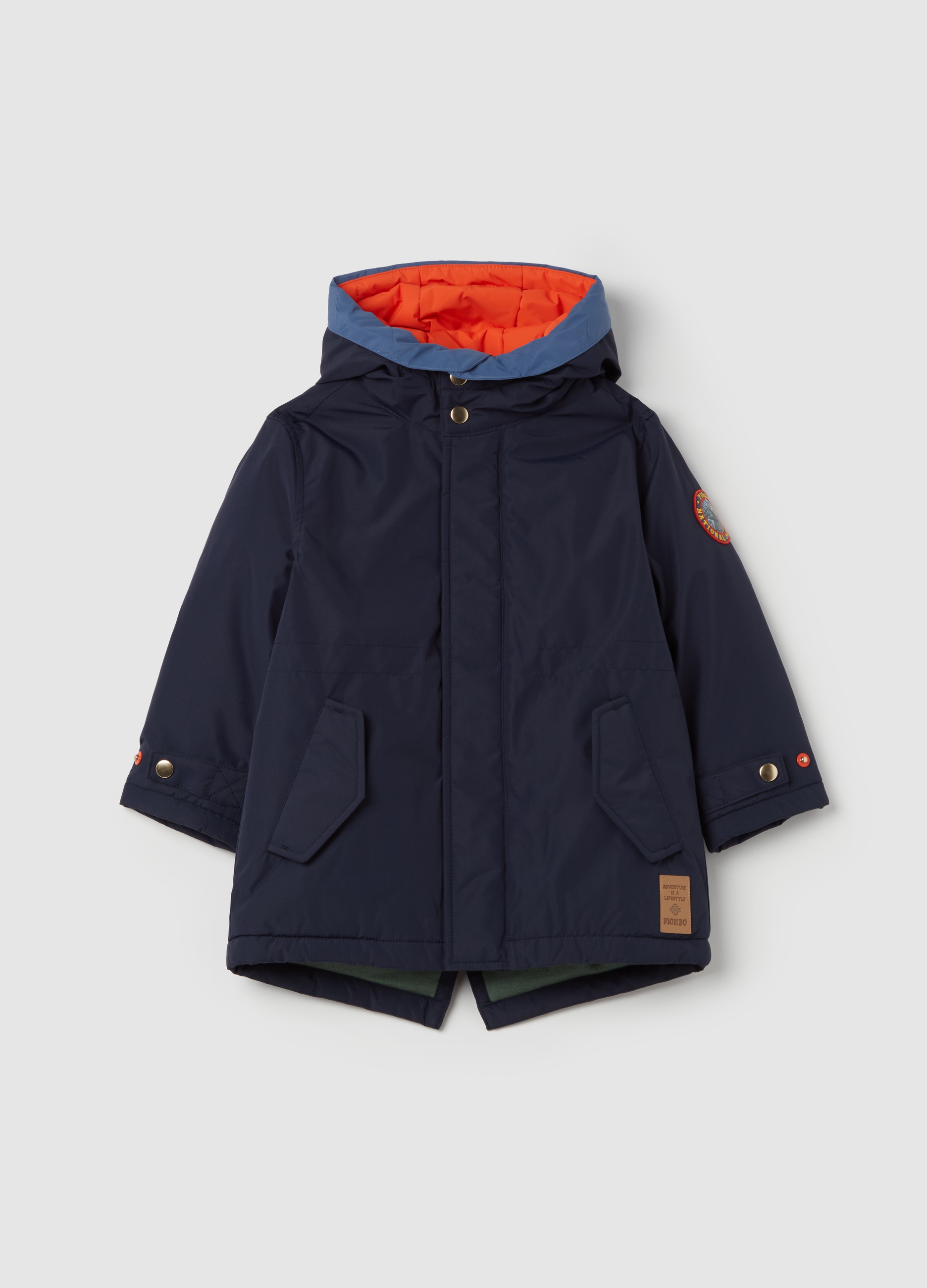 Parka with hood and patch logo, ideal for spring and autumn. The blue color makes it easy to match different casual or elegant outfits. Made with high quality materials, it guarantees comfort and versatility. An essential garment to add style to your wardrobe.