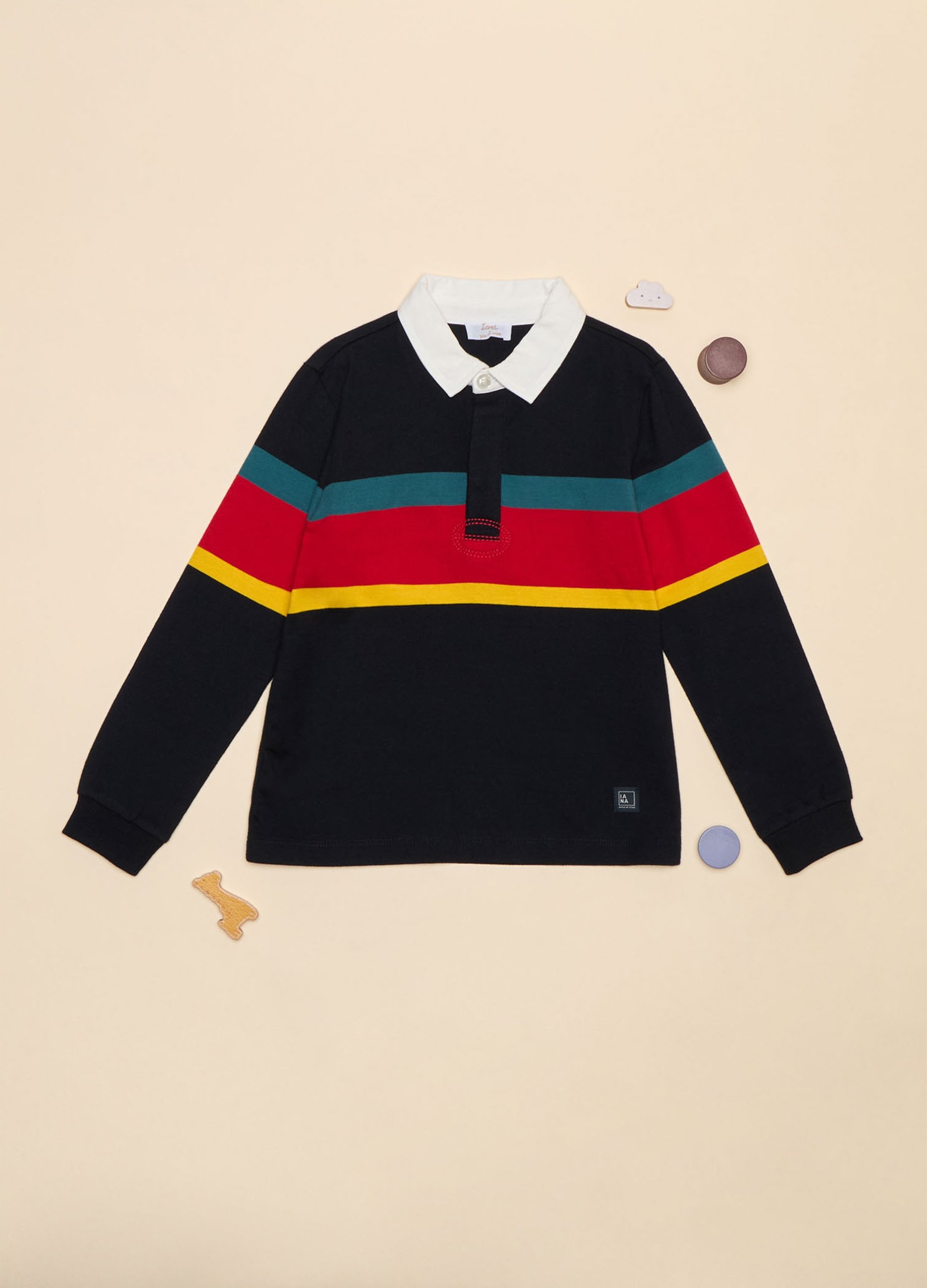 Men's casual t-shirt in light and breathable cotton. The pole model is versatile and suitable for all seasons. The multicolored fantasy adds a touch of vivacity to the look. Ideal for a casual and fashionable outfit.