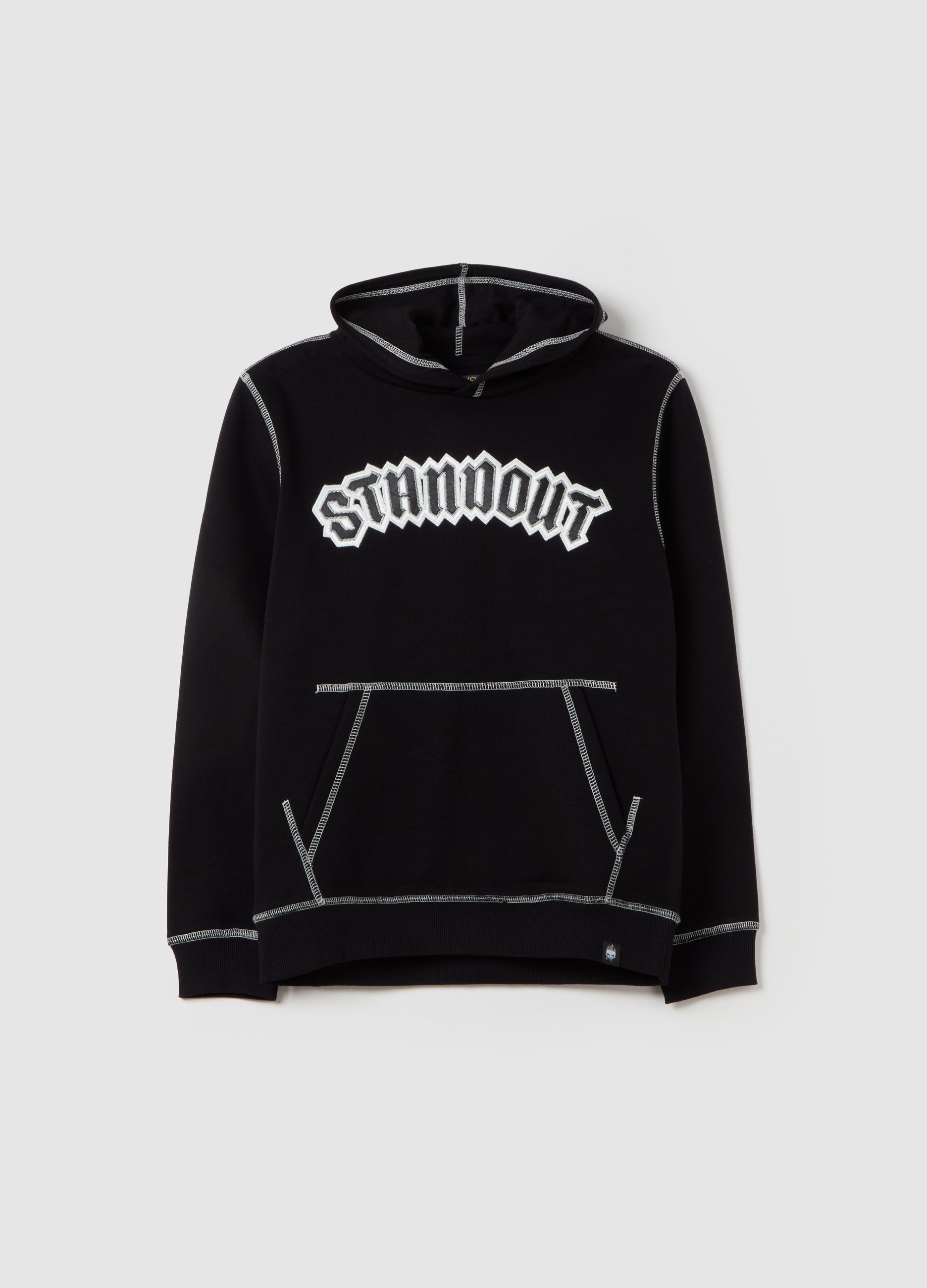 Hoodie and contrasting seams for men, perfect for autumn and winter. The black color makes it easy to match every outfit. Made with high quality materials, it guarantees comfort and warmth during colder days. A casual and fashionable garment, ideal for an urban and trendy look.