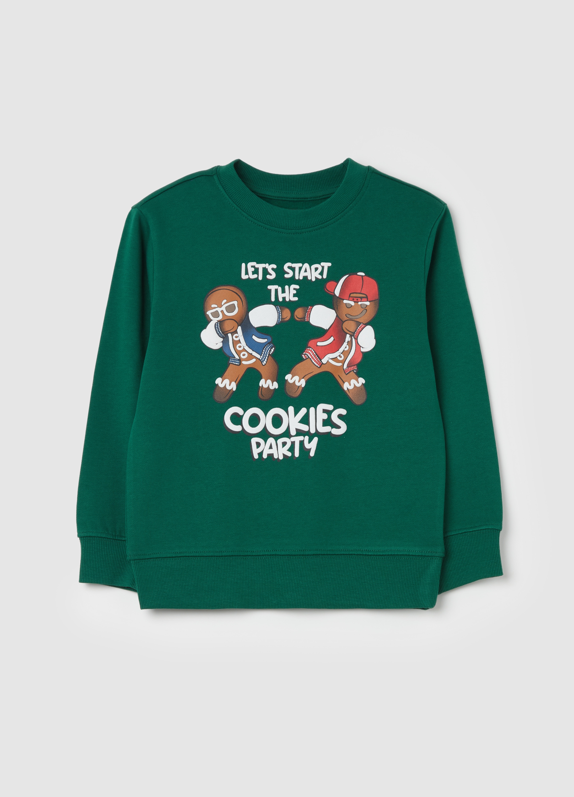 "Let's Start The Cookies Party" print for men, ideal for autumn/winter. Green and casual style, this sweatshirt is perfect for a fun and fashionable look. Made of soft and warm fabric, it will be the perfect garment to face colder days with style and comfort. Available in size 34.