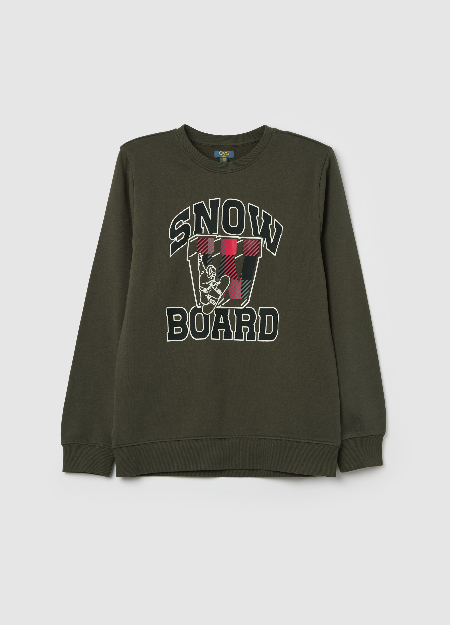 Men's Snowboard print sweatshirt is perfect for autumn and winter. Green, it is made of soft and comfortable fabric. The casual style makes it ideal for an informal look, while the design with snowboard print adds a sporty and youthful touch. Ideal for those who love a casual and dynamic style.