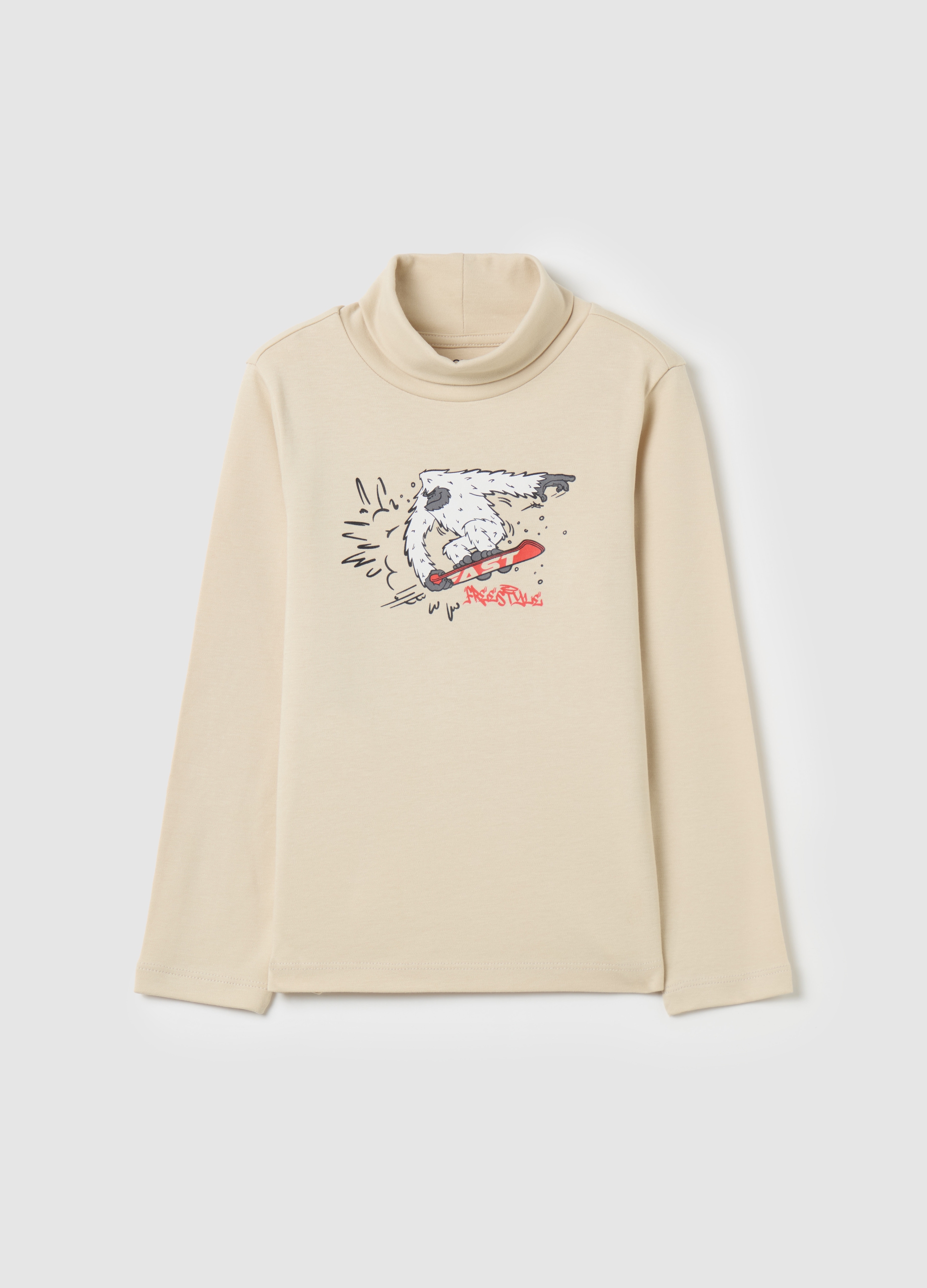 The OVS beige cotton T-shirt is perfect for every season. With high neck and minimal print, it is ideal for a casual and fashionable look. Made of soft cotton, this shirt is comfortable and versatile, suitable for every occasion. Add a unique style to your wardrobe with this high quality T-shirt.