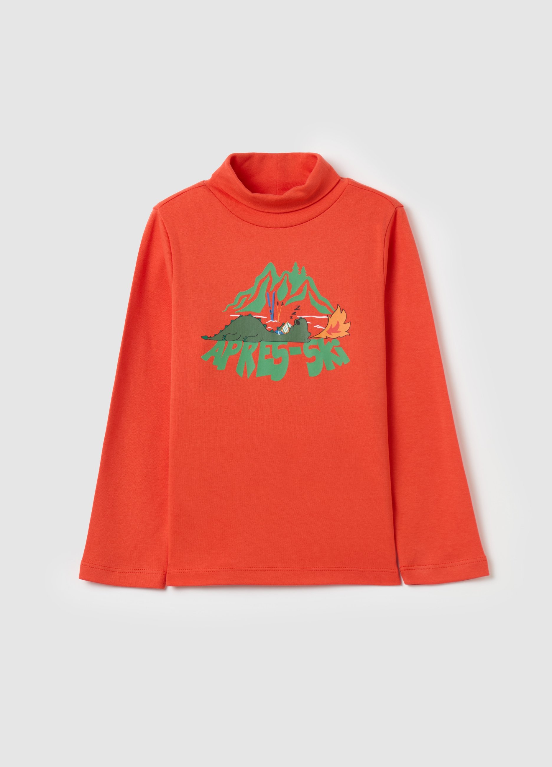 Men's cotton t-shirt with high-neck orange print, perfect for all seasons. Made with high quality materials, it offers comfort and style on every occasion. Its vibrant tones will add a touch of joy to your casual look. A versatile and fashionable garment to have in your wardrobe.