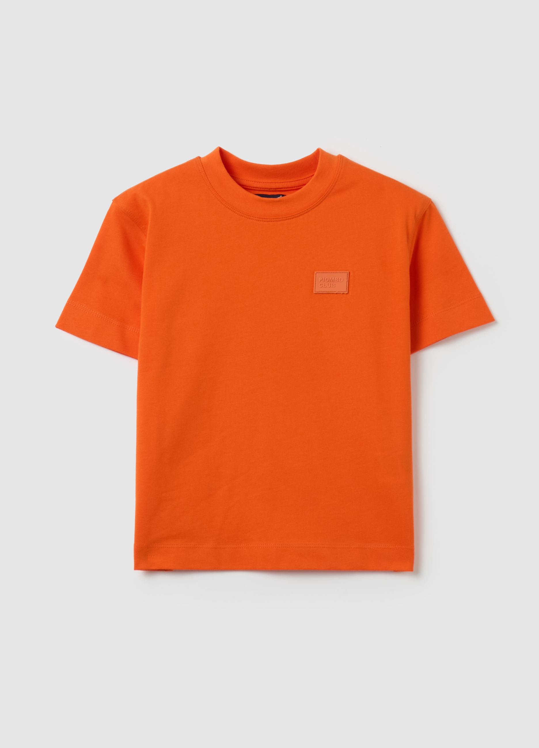 Men's casual t-shirt in orange cotton, perfect for every season. With patch logo on the chest, it is a versatile and fashionable garment. Ideal for a comfortable and casual look, to pair with trousers or jeans. Suitable for a dynamic man and looking for a trendy garment.