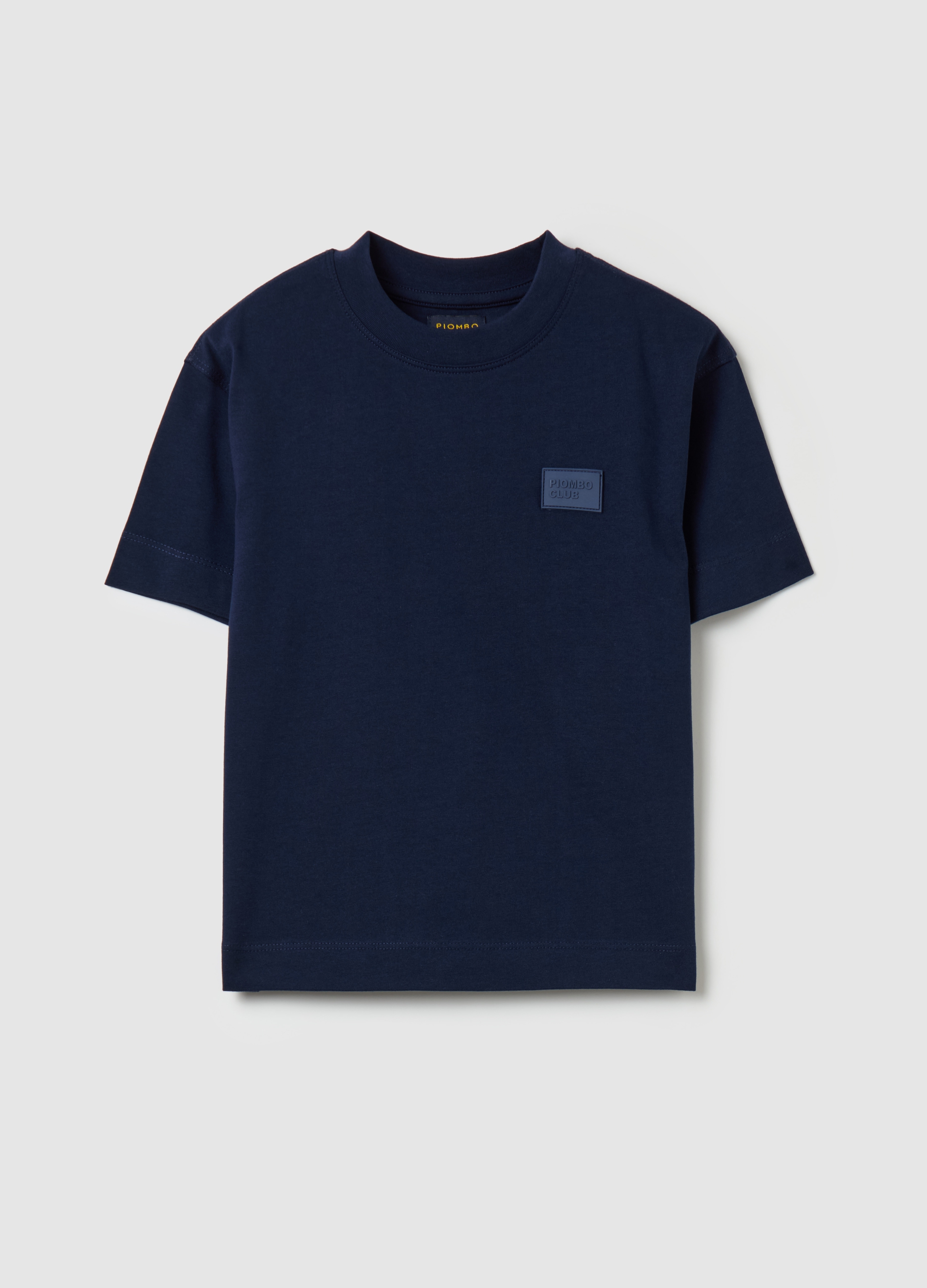 T shirt in blue cotton with patch logo on the chest. Perfect for a casual and comfortable look to wear in every season. Made with high quality materials to ensure durability. A classic and versatile garment for every occasion.