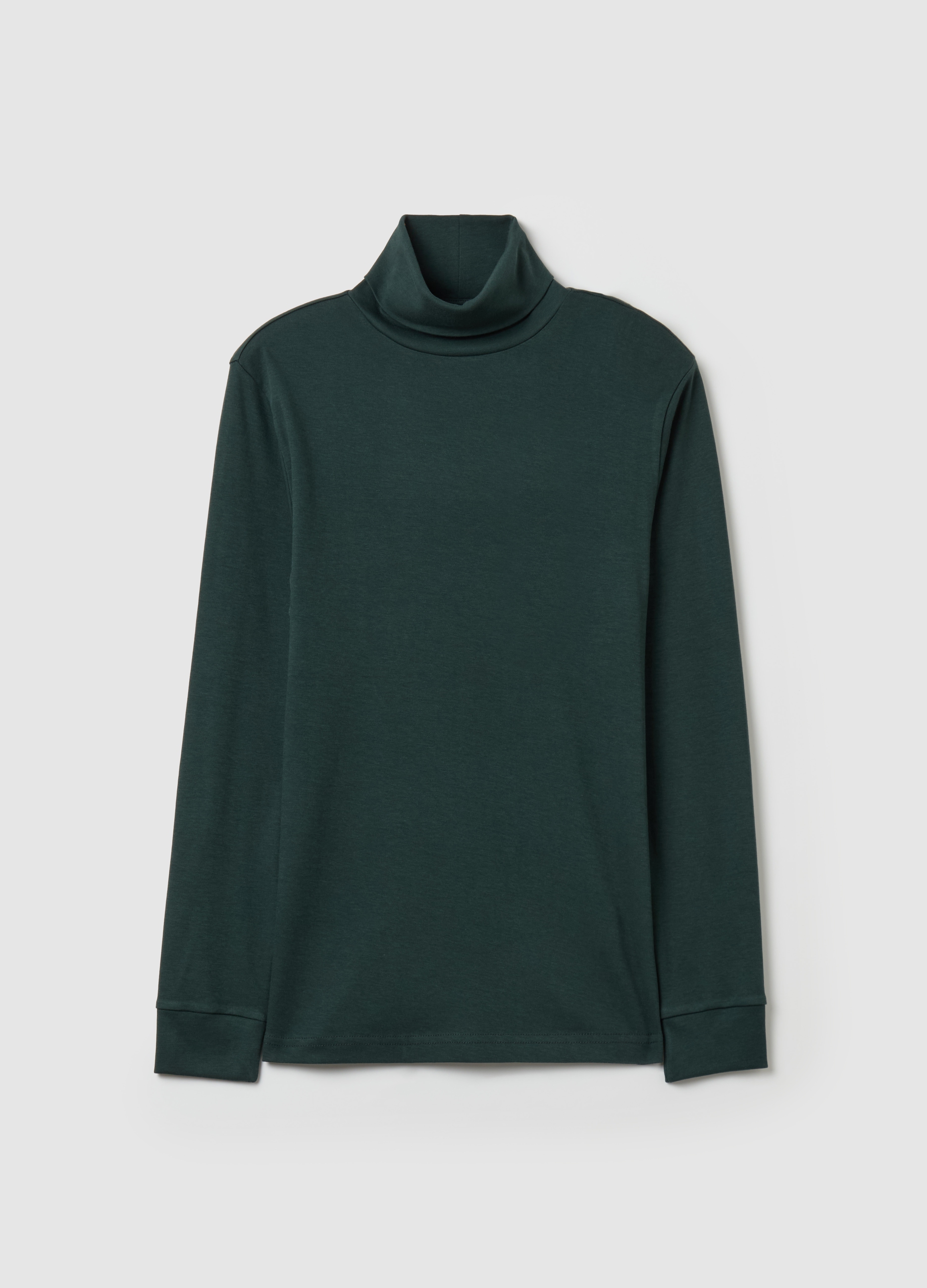 Men's t-shirt in high neck green cotton, perfect for every season. Made of soft interlock fabric, it guarantees comfort and style on every occasion. A versatile and trendy garment, ideal for a casual and fashionable look.