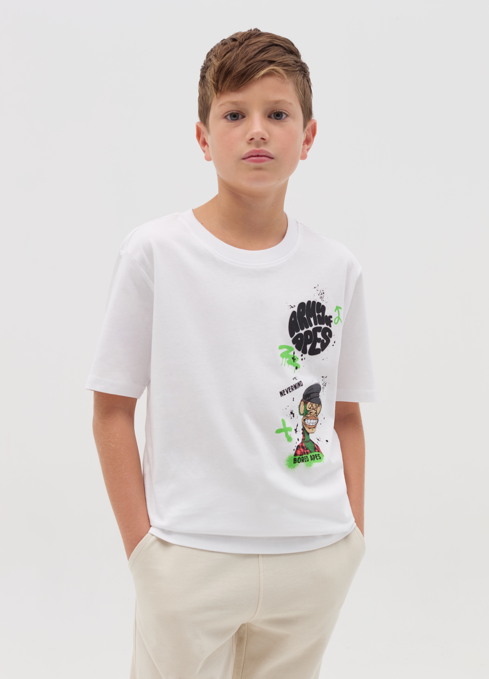 White cotton t-shirt with "Army of Apes" print, suitable for all seasons. Ideal for a casual and fashionable look. Made with high quality materials to ensure comfort and resistance. A versatile garment to wear on different occasions.