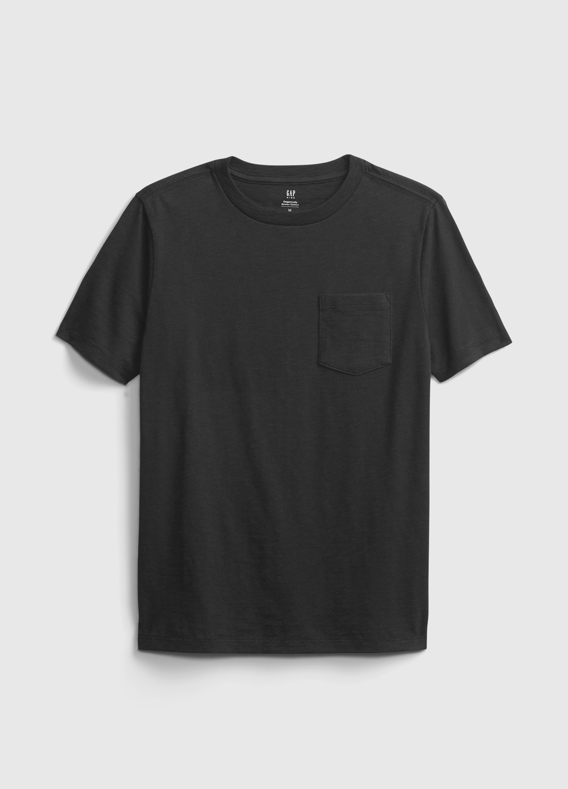 Black cotton t-shirt with pocket, suitable for all seasons. Comfortable and versatile, ideal for a casual and fashionable look. Available in different sizes to fit every body. Perfect to match jeans or sports pants.