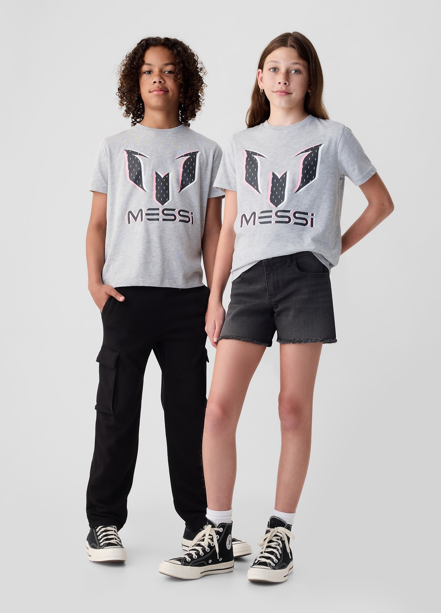 The Grey Cotton T-shirt with Messi print is perfect for a casual and trendy look in all seasons. Made of high quality soft fabric, it guarantees comfort and style on every occasion. The classic cut and sports print make it a versatile and fashionable garment. Combine it with jeans and sneakers for an informal and trendy outfit.