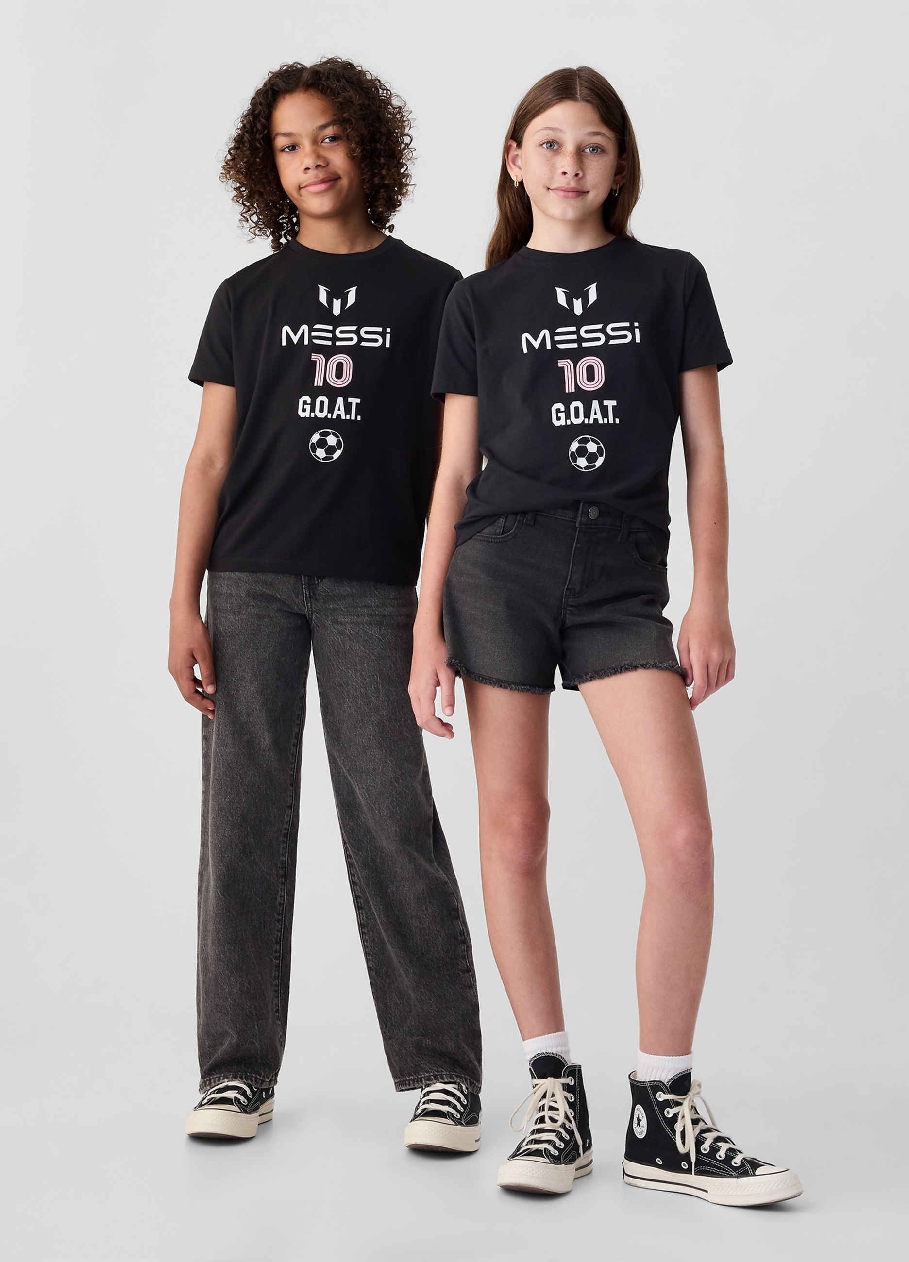 Black cotton casual t-shirt with Messi print, suitable for all seasons. Size XS/104 108, ideal for a trendy and comfortable look. Perfect to match jeans or casual pants for a casual and fashionable outfit. Made with high quality materials to ensure strength and comfort.