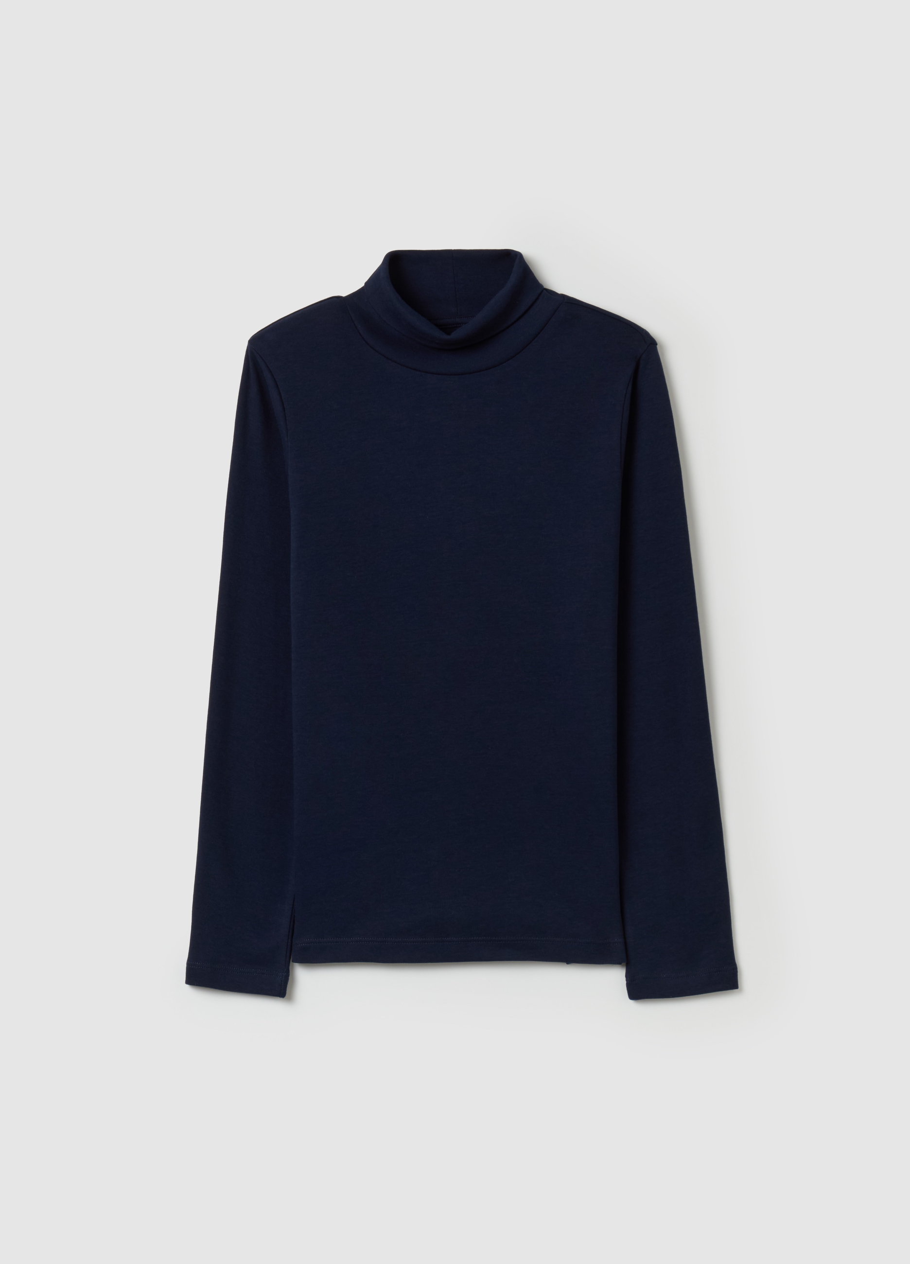 Casual t-shirt in high neck cotton, perfect for every season. The blue color makes this shirt suitable for any outfit. Made with high quality materials, it ensures comfort and style on every occasion. An indispensable garment in the wardrobe of every modern man.