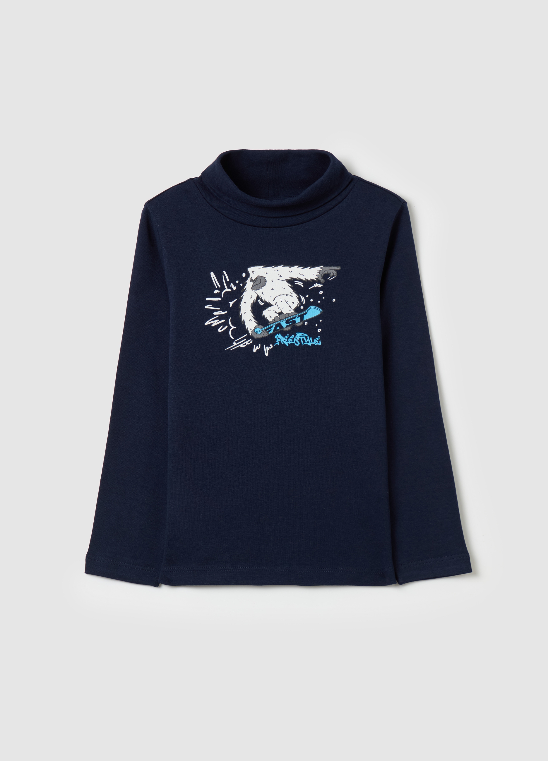 OVS T shirt in high neck cotton with men print