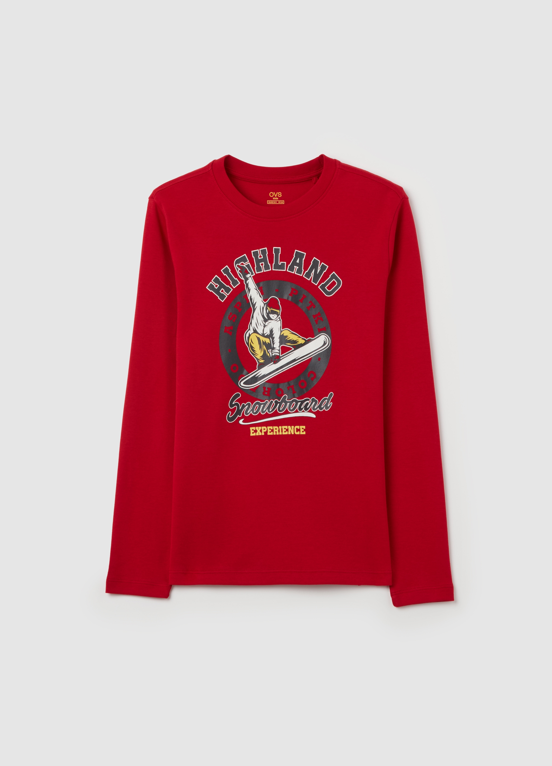 This "highland snowboard" long-sleeved T-shirt is perfect for a casual but effective look. The red color makes it suitable for every season, while the light fabric allows you to wear it comfortably on every occasion. A versatile and trendy garment that cannot fail in the wardrobe of every man who loves casual style.
