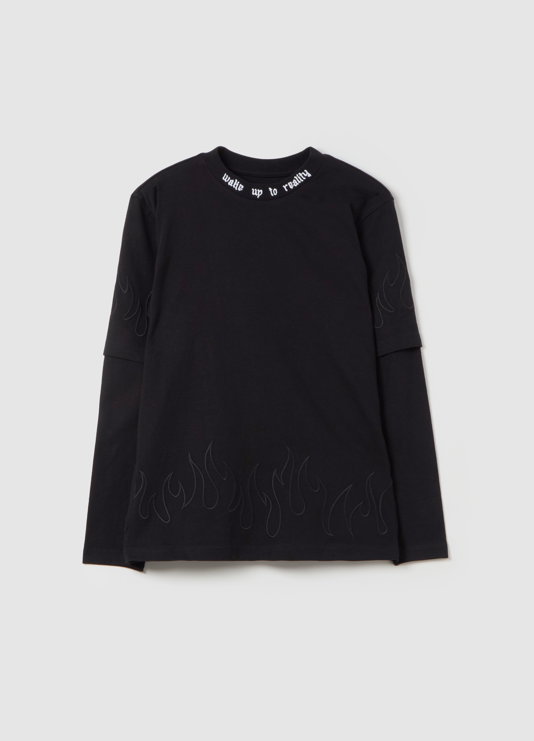 T-shirt long sleeves with black embroidery, perfect for all seasons. Made of lightweight and comfortable fabric to wear, ideal for a casual and fashionable look. The classic cut and embroidered details make this shirt a versatile garment to match with jeans or pants. A must-have in the wardrobe of every modern man.
