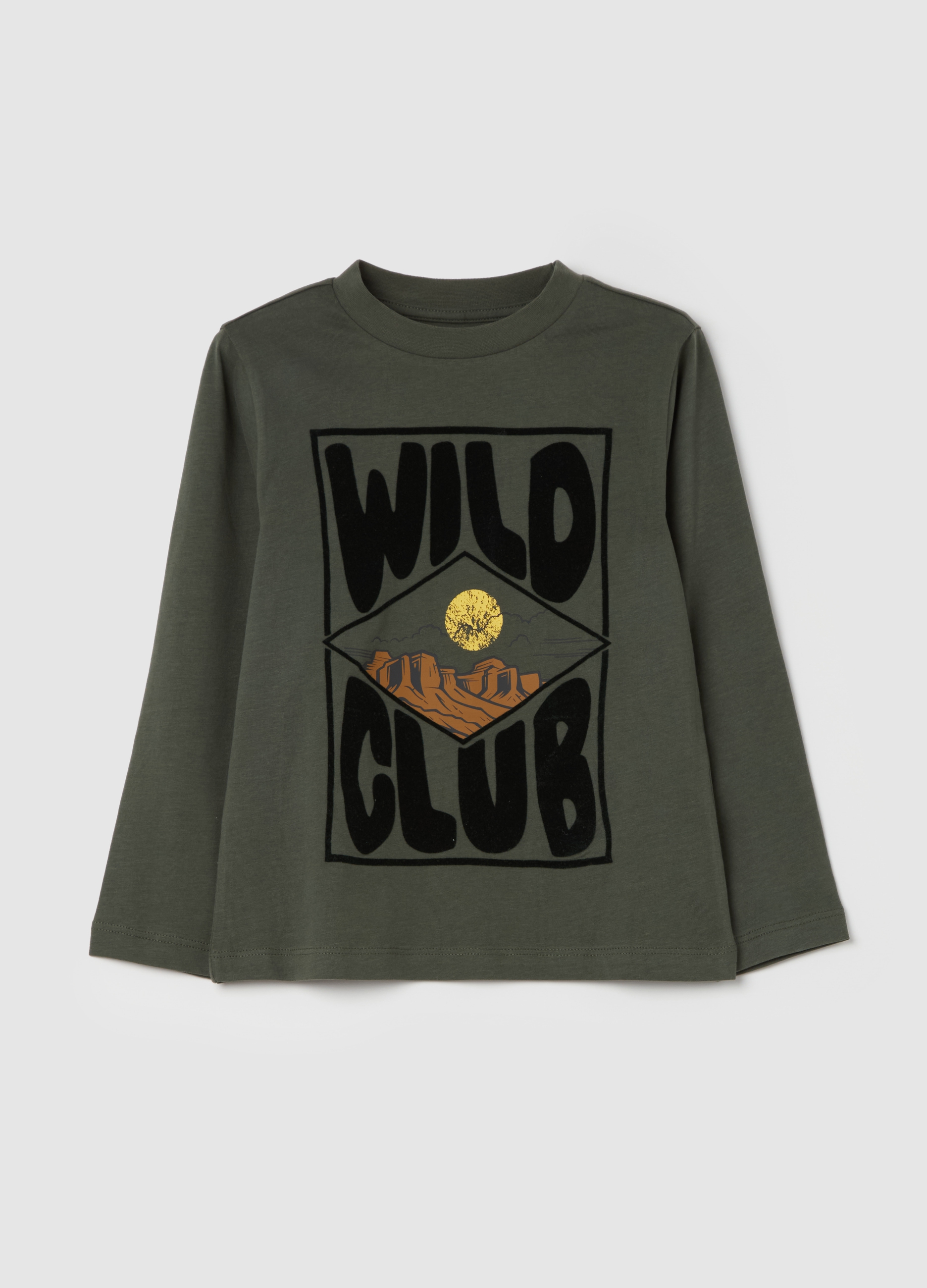 Long sleeve t-shirt with men's print, made of soft green cotton. Ideal for a casual and fashionable look every season. The comfortable cut and modern print make this garment a must-have for the wardrobe of every man. Perfect to match with jeans or casual pants.
