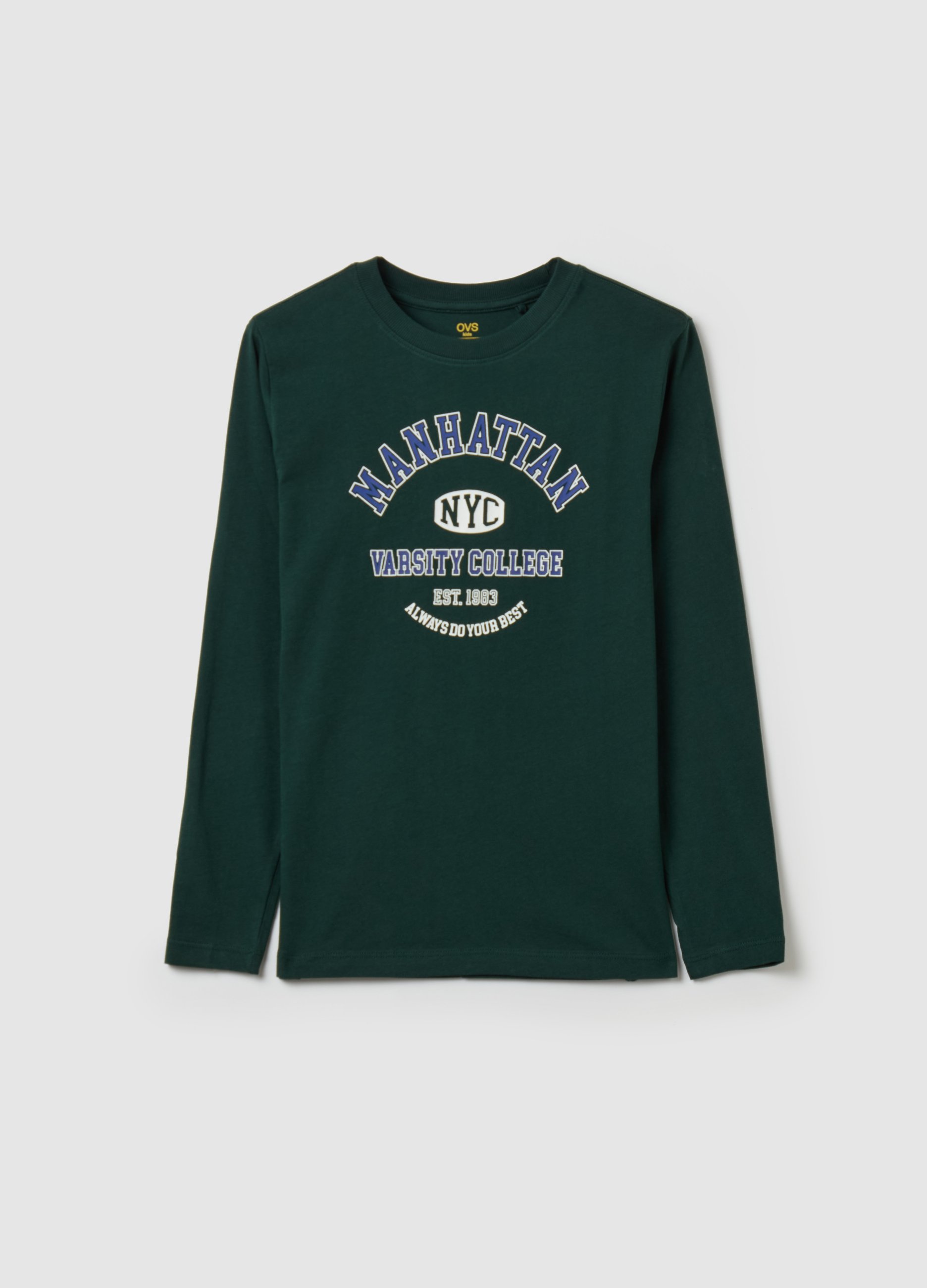 Long sleeve t-shirt with college print for men, green, perfect for all seasons. Made of high quality soft fabric, it guarantees comfort and casual style on every occasion. The simple and fashionable design makes it a versatile garment to match jeans or sports pants. Add a touch of originality to your look with this OVS t-shirt.