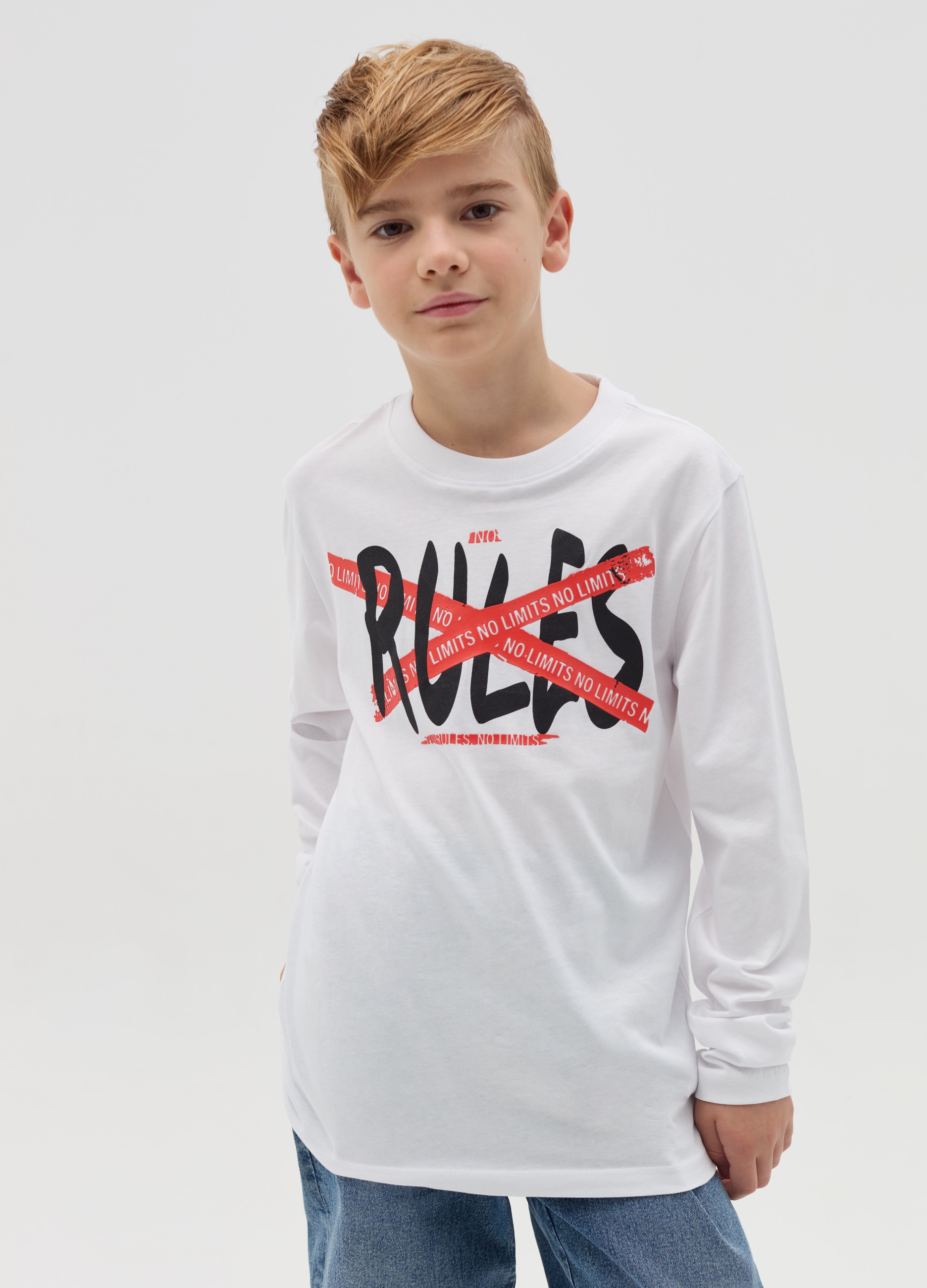 The long sleeve T-shirt with white OVS man print is perfect for every season. Made of soft cotton, it features a front print that adds a touch of style to your casual look. Comfortable and versatile, this shirt is a must-have for your wardrobe.