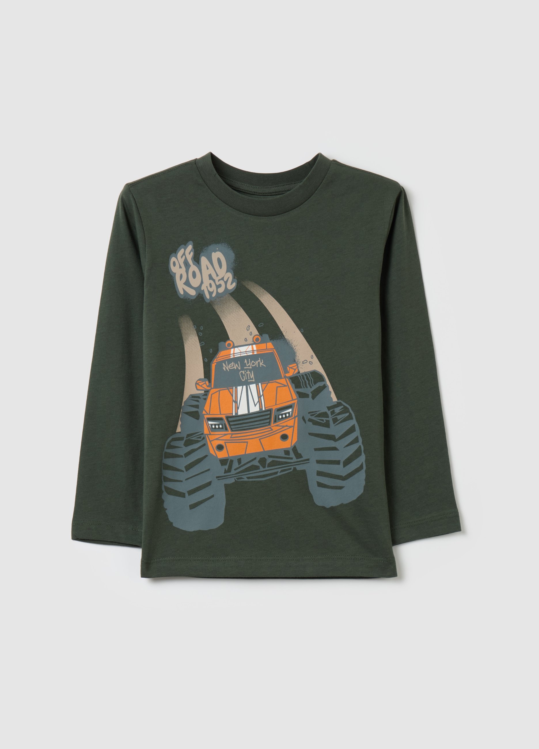 Men's casual t-shirt with long sleeves, made of soft green cotton. Ideal for wear in all seasons, this shirt features an original print that gives a unique touch of style to the look. Perfect for a casual and comfortable outfit, to match your favorite jeans or under a light jacket for a more elegant look.