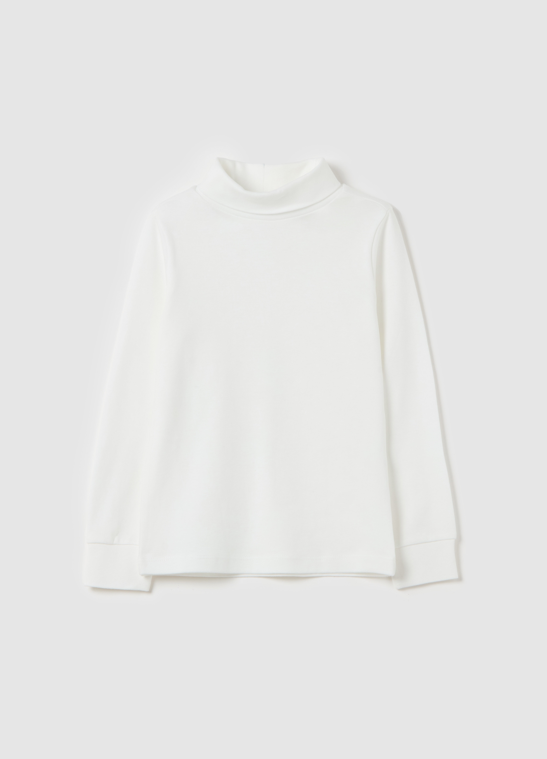 T-shirt with long sleeves and high neck, perfect for every season. Made of soft white fabric, ideal for a casual and versatile look. Comfortable and fashionable, to match with jeans or sports pants. A must-have for every man who loves informal style.