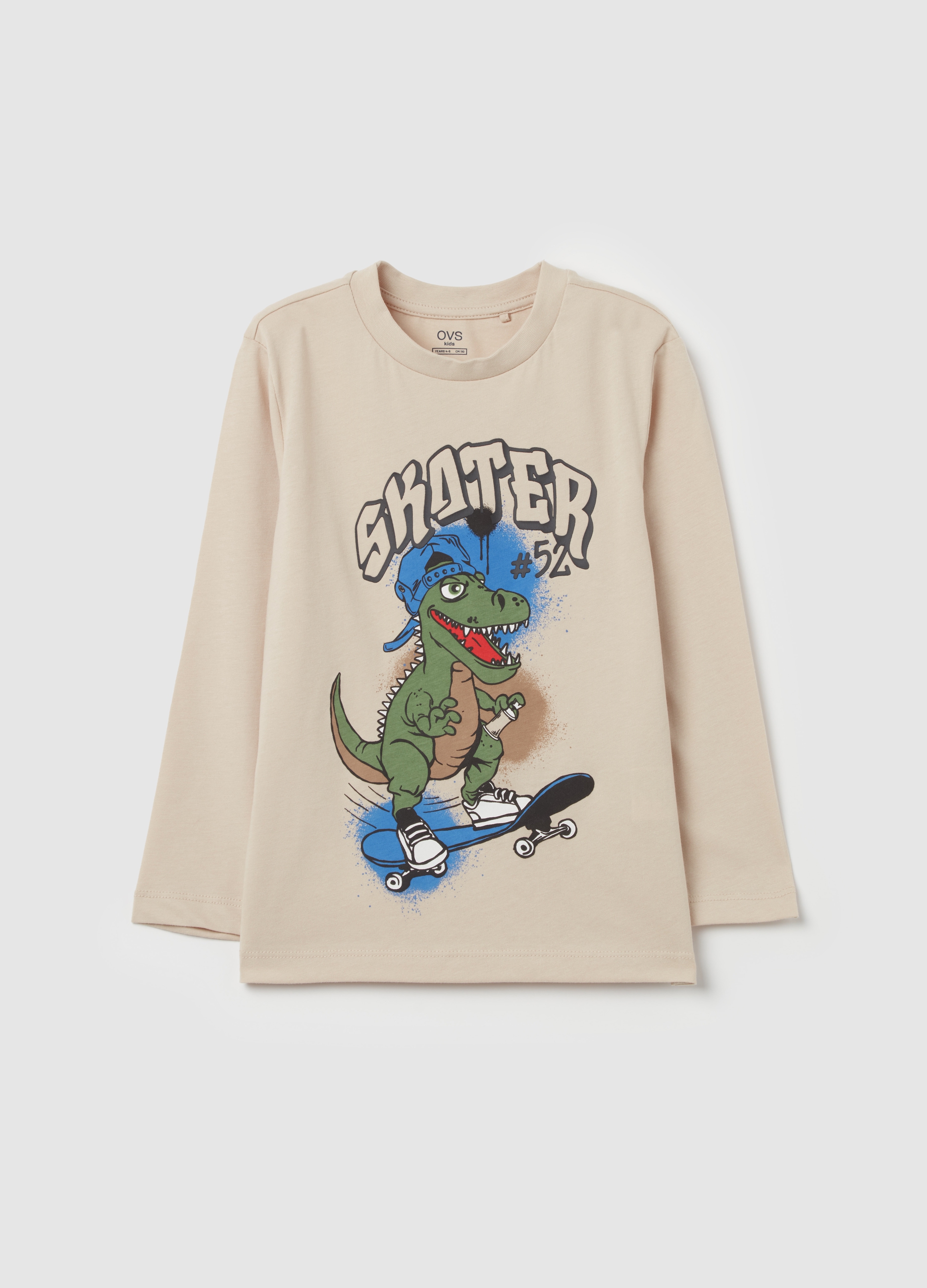 OVS T Shirt Sleeves Longue Printing Dinosaur Skater Man 3 4