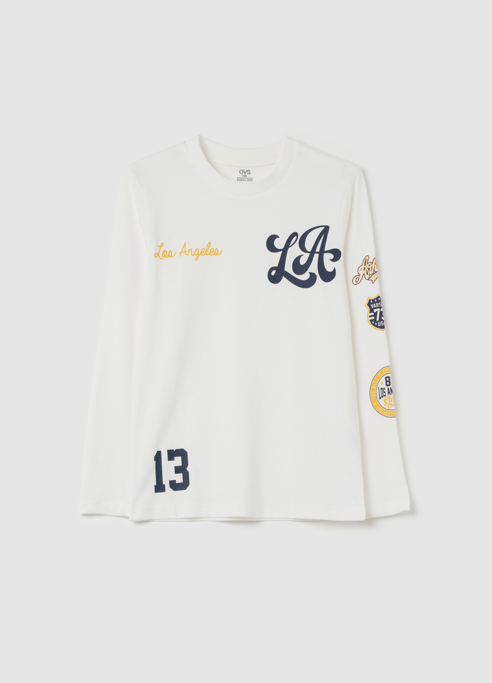 OVS T Shirt Sleeves Lunghe Print Los Angeles Man White
