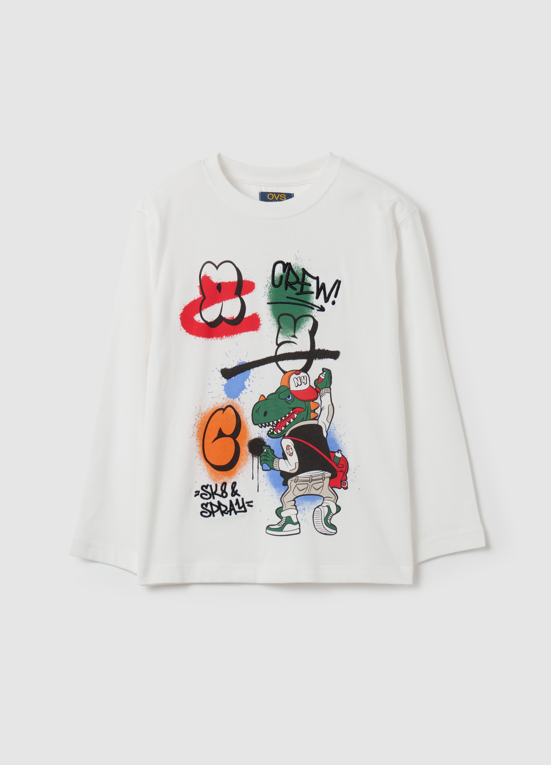 Long sleeve t-shirt with men's print, perfect for every season. Made of soft white fabric, ideal for a casual and comfortable look. The classic cut and trendy print make this shirt a versatile garment to match jeans or sports pants. Add a touch of style to your wardrobe with this quality T-shirt.