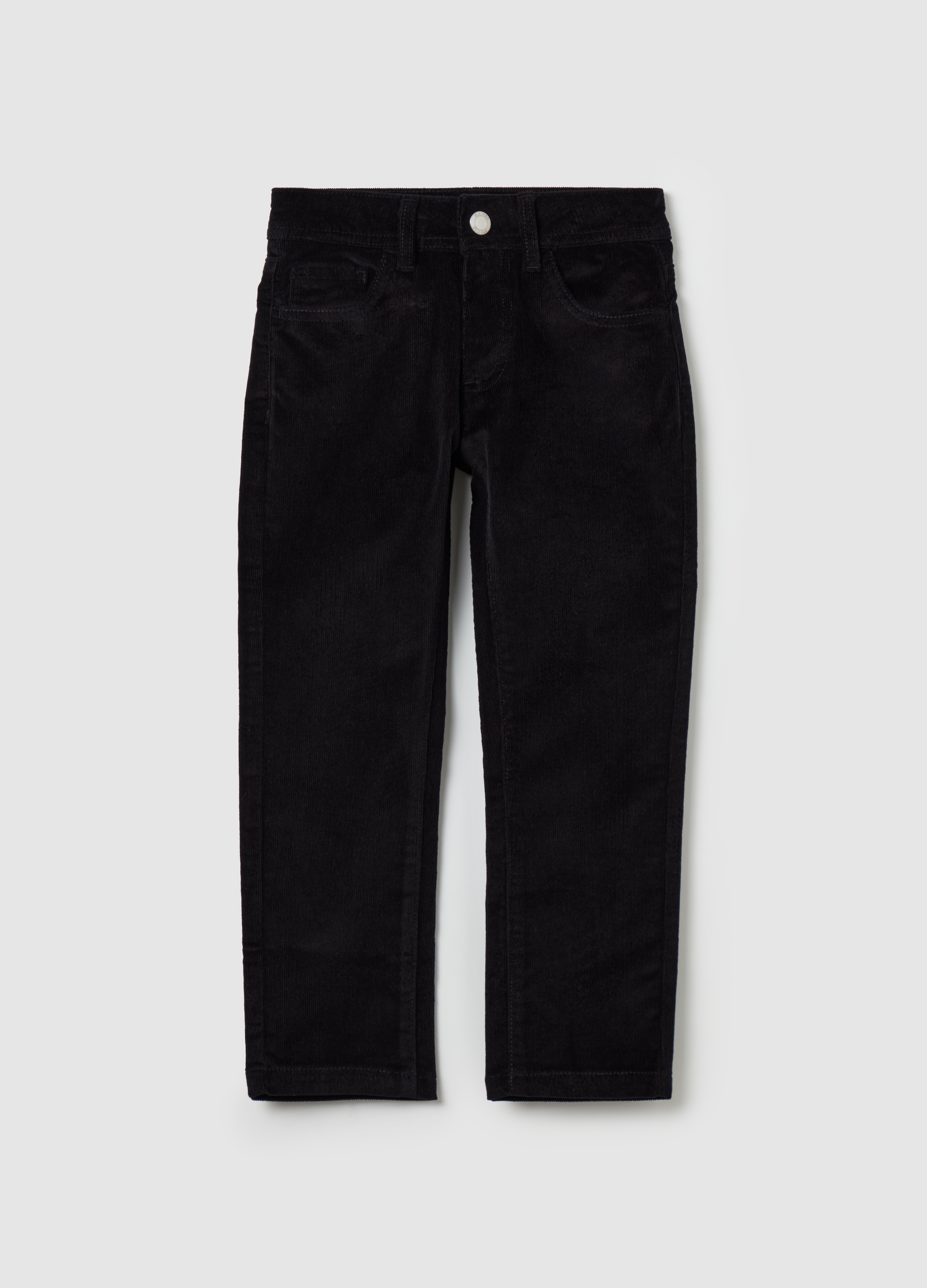 Men's casual pants in ribbed velvet fabric, perfect for autumn/winter. The black color makes them versatile and easy to match any outfit. Equipped with five practical pockets, they are comfortable and fashionable for every occasion. Add a touch of elegance to your look with these OVS pants.