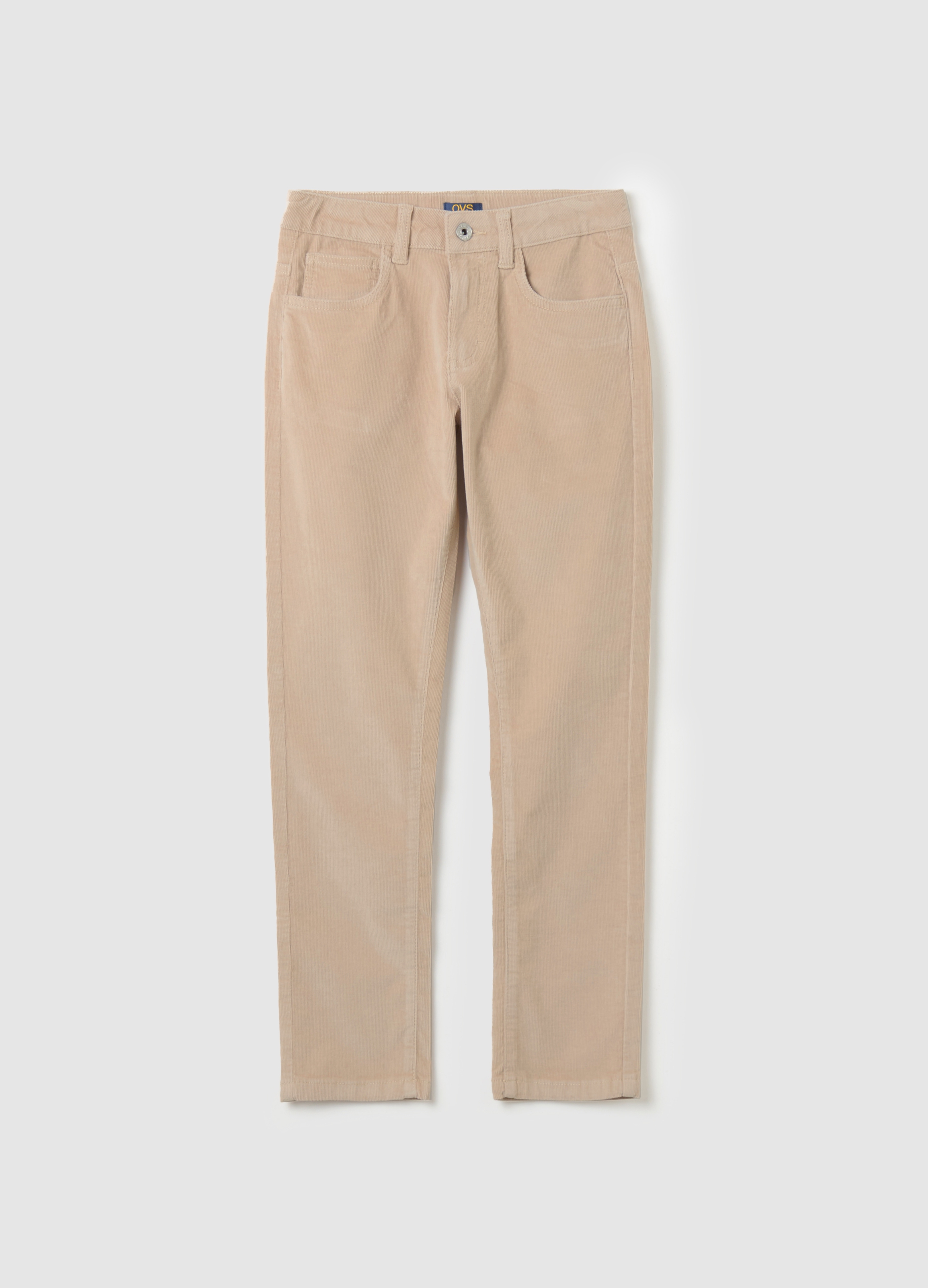 Casual trousers in beige corduroy, perfect for autumn and winter. With five pockets and comfortable fit, ideal for a casual and fashionable look. Made of high quality materials for lasting comfort. Easily combined with sweaters and sports shoes for a trendy outfit.