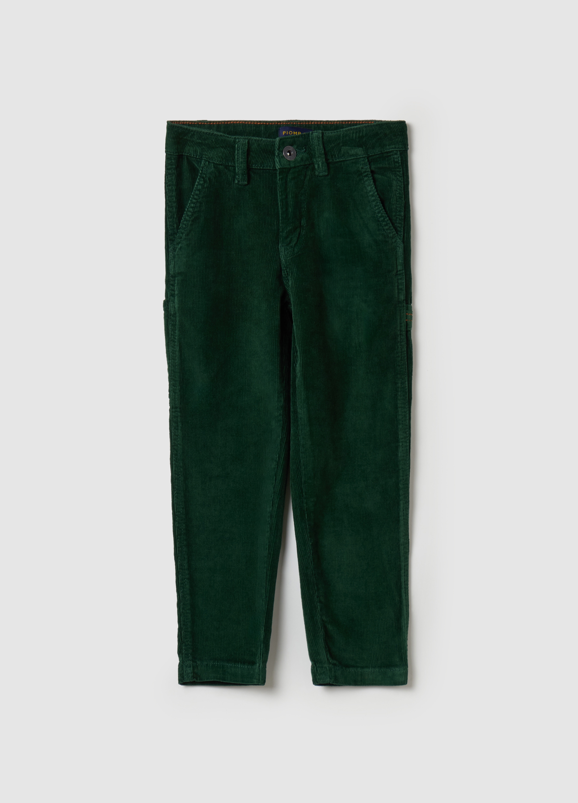 Men's casual pants, Worker model in ribbed velvet, ideal for autumn/winter. Green color, perfect for an elegant and comfortable look. Suitable for different occasions and easily combined with other clothing. Add a touch of style to your wardrobe with these PIOMBO pants.