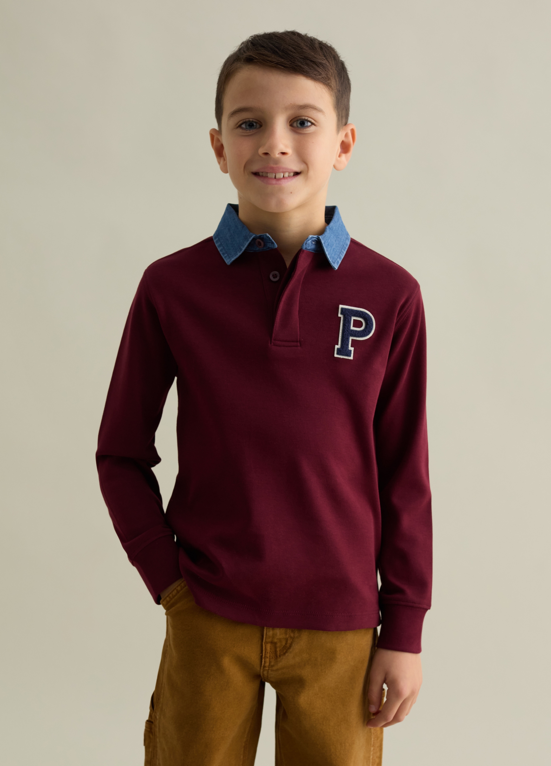 Long sleeve polo with bouclé patch for man in red color. Ideal for a casual and comfortable look, suitable for all seasons. Made of high quality fabric, it guarantees a fashionable and versatile look. Add a touch of color to your wardrobe with this casual t-shirt.