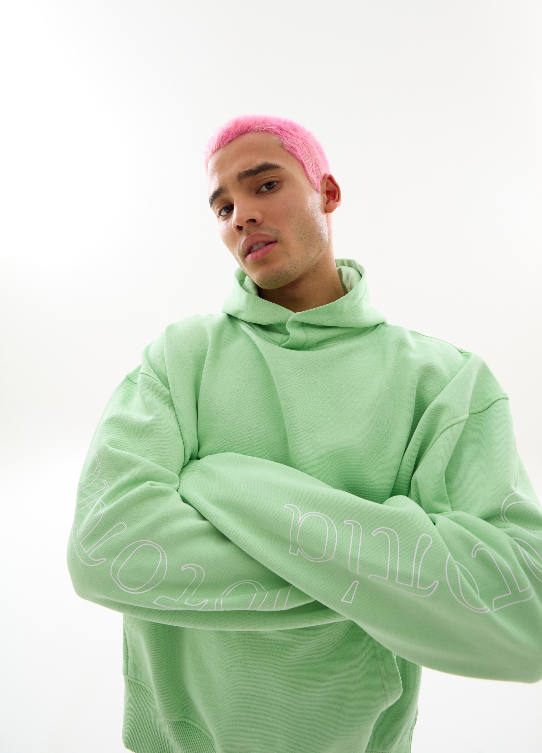 Men's casual top perfect for summer in green color, with light hood and graphic print. Made of high quality fabric, it guarantees comfort and style on every occasion. A versatile garment suitable for those who love a casual look but taken care of in detail. Ideal to pair with trousers or shorts for a cool and fashionable outfit.