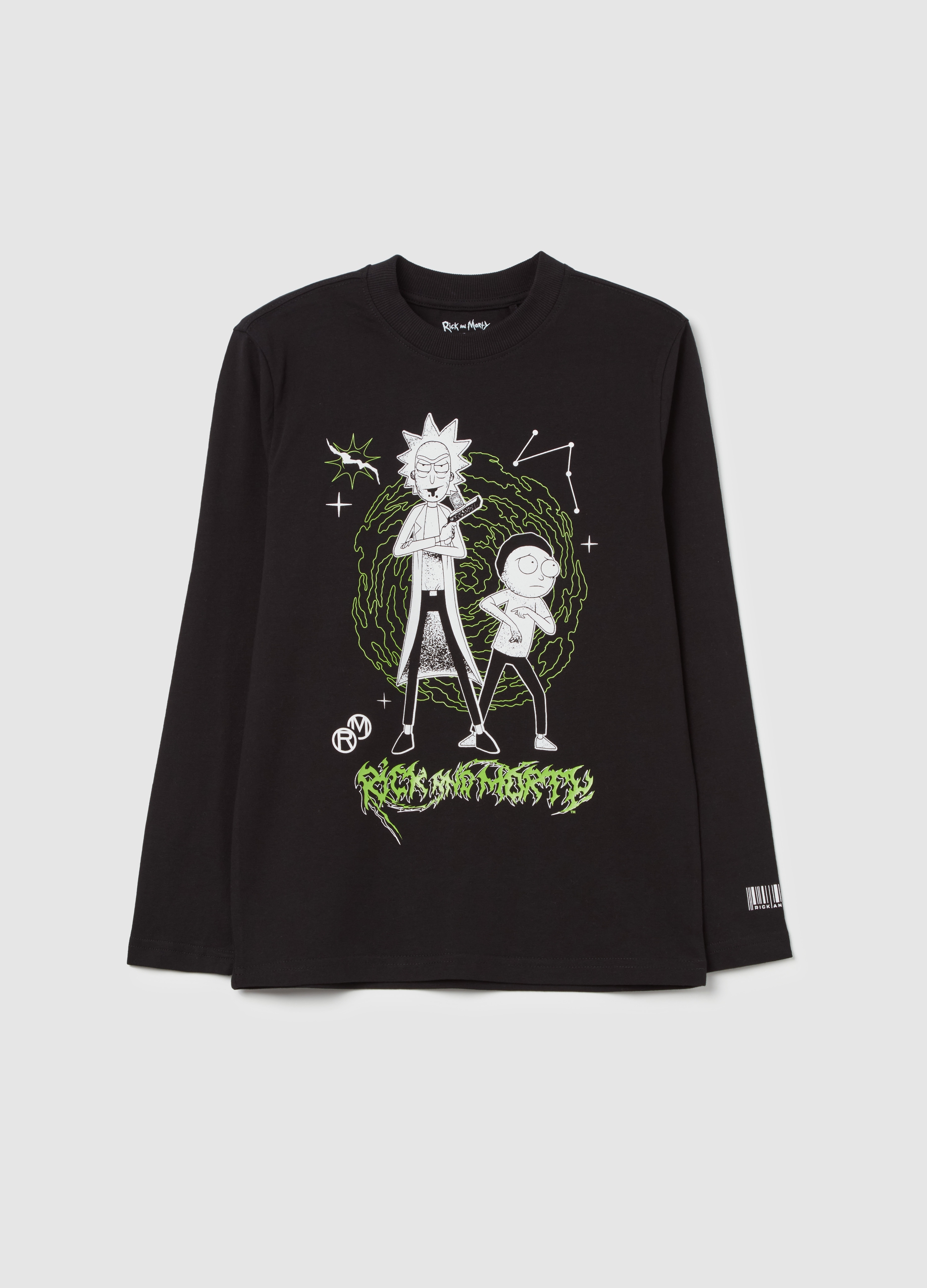 Black casual t-shirt with long sleeves and Rick And Morty print. Ideal for all seasons, made of soft fabric for maximum comfort. A unique and original garment for a casual and fashionable look. Available only on OVS IT.