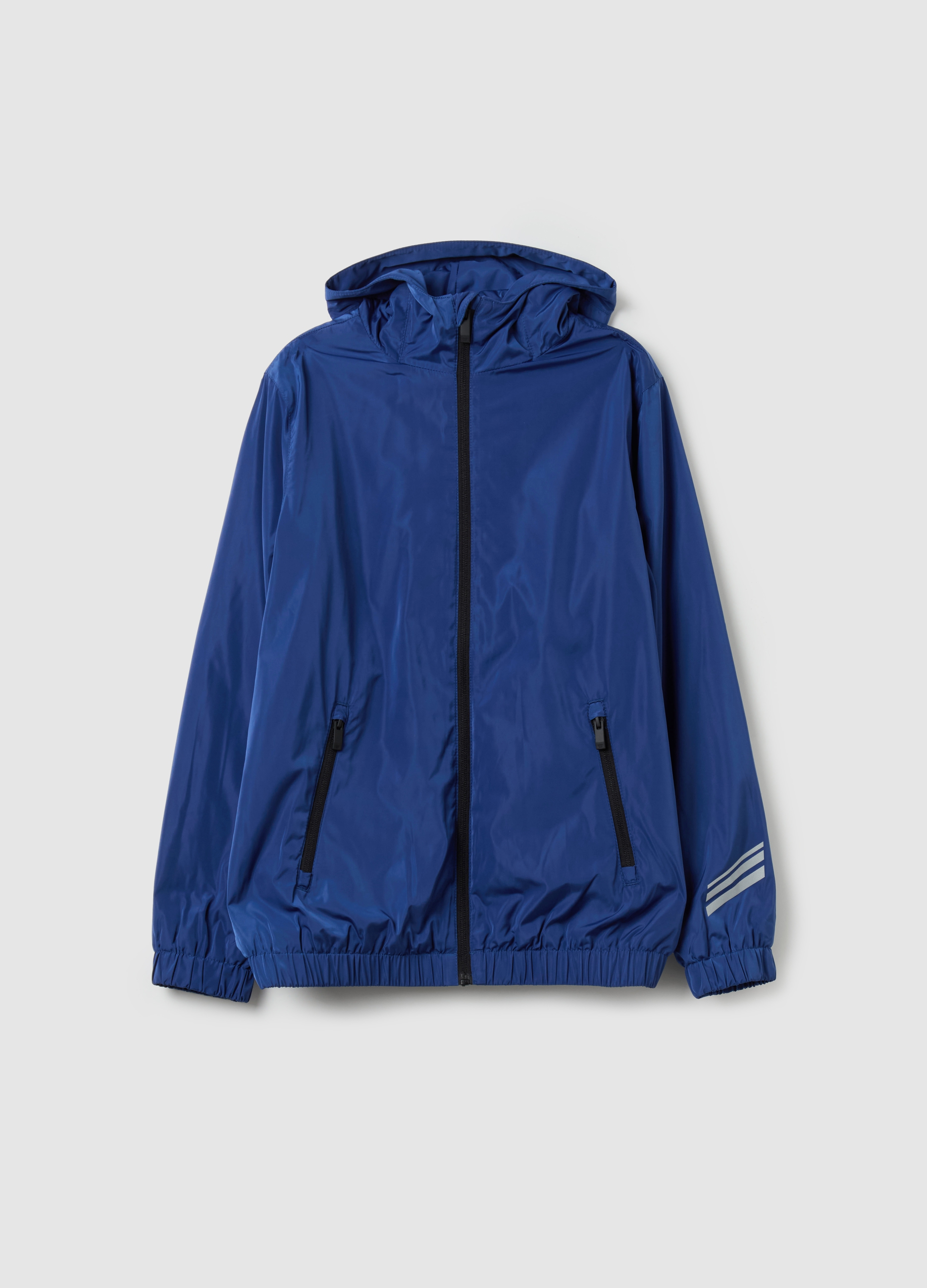 Waterproof jacket with full zip and hood, ideal for spring and autumn. The blue color gives an elegant and casual touch to your look. Made of high quality materials to ensure comfort and protection during rainy days. Perfect to wear on any occasion.