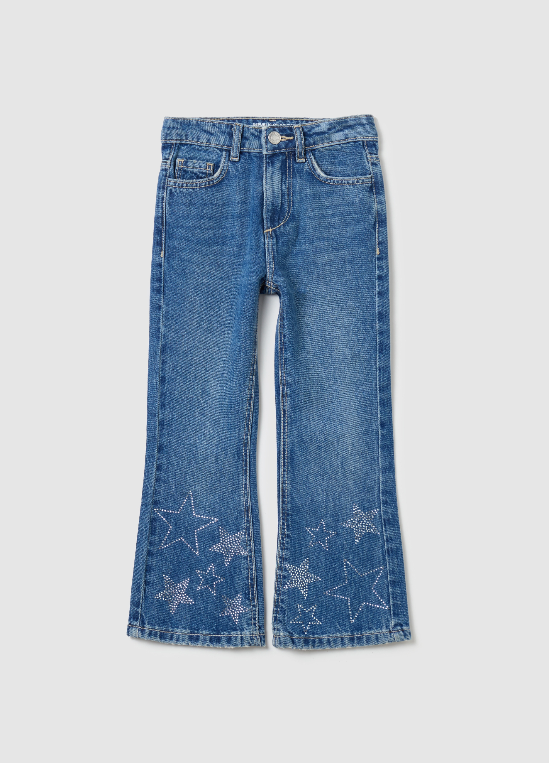 OVS Jeans Fit Straight Gamba Larga With Stars in Rhinestones Woman Denim