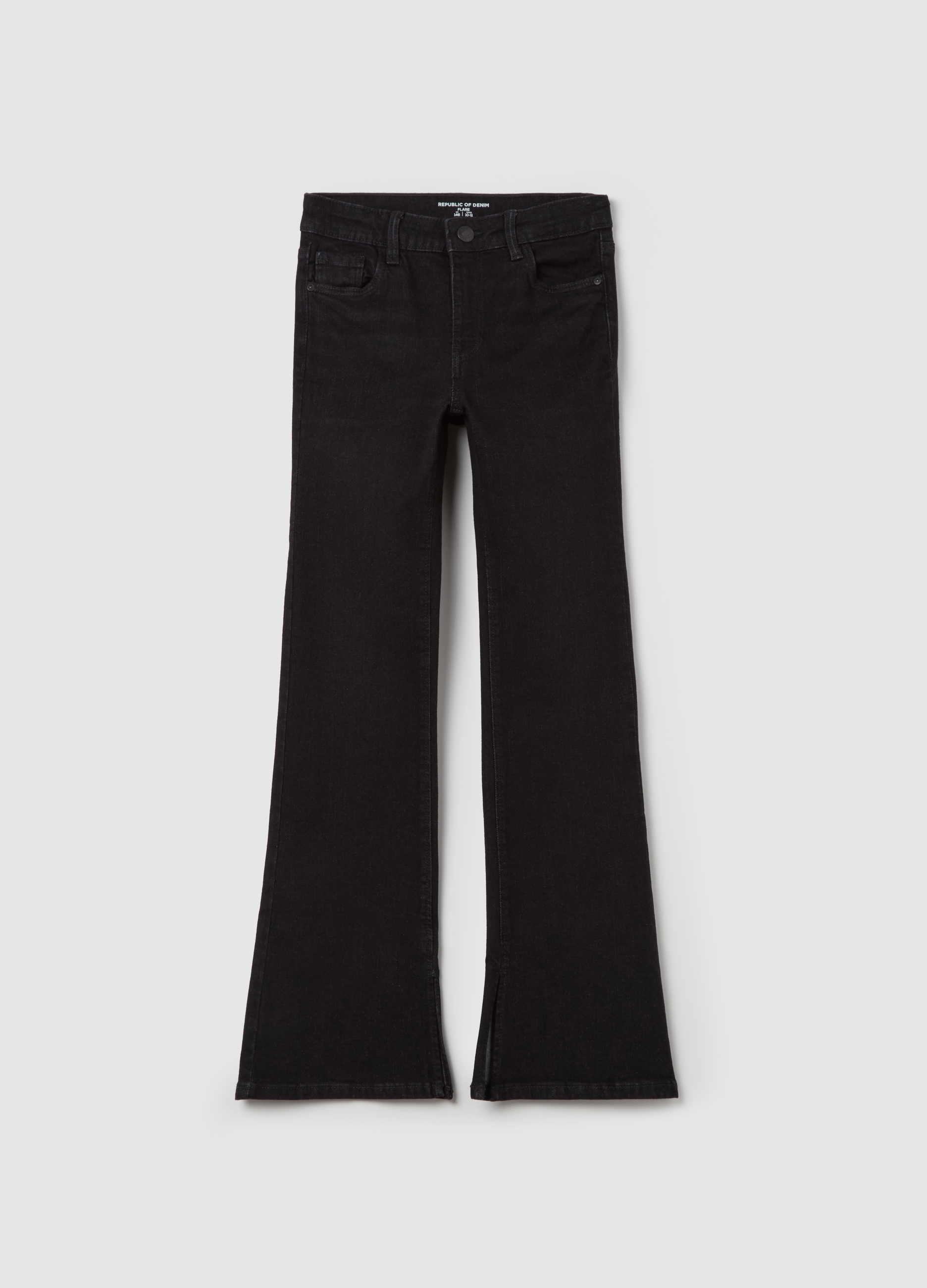 Jeans Flare Fit Five Unisex Pockets is perfect for every season. Made in black, this casual garment is ideal for creating versatile and fashionable outfits. With its classic five-pocket design and comfortable fit, it will be the perfect companion for your wardrobe. Choose the quality and style of OVS for your daily look.