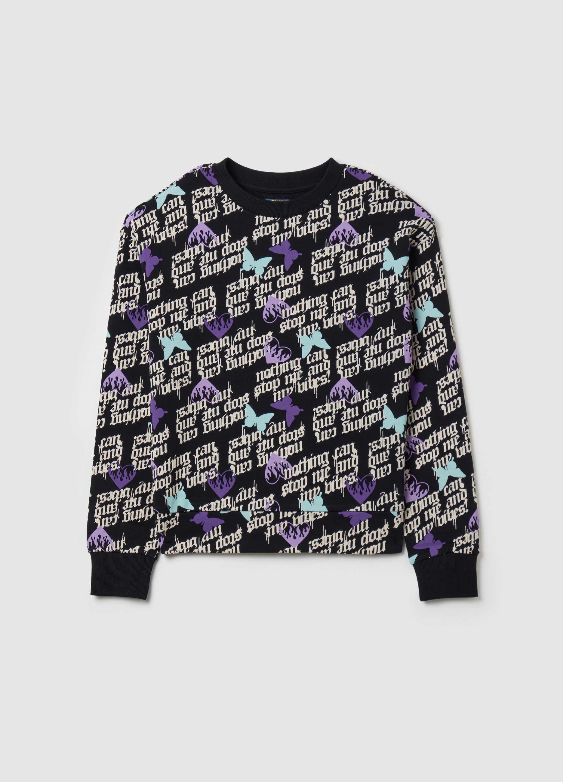 Black cotton sweatshirt with gothic print for women. Ideal for autumn and winter, this casual sweatshirt is perfect for comfortable and fashionable look. With long sleeves and round neckline, it will be the perfect garment to wear on colder days. Combine it with jeans or leggings for a unique style outfit.