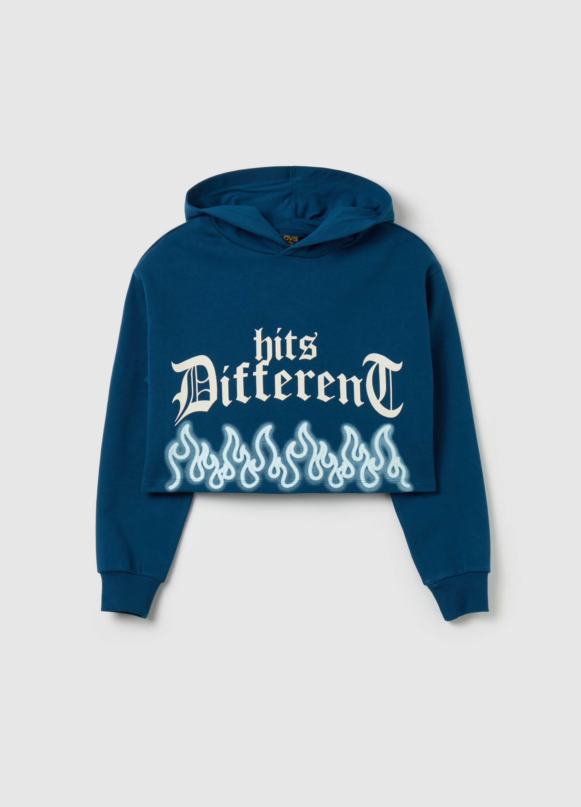 The blue crop sweatshirt with hood and print is ideal for a casual look in autumn and winter. Made of soft and warm fabric, it is perfect to wear during cooler days. The modern and fashionable design makes it suitable for any occasion, from the exit with friends to leisure in the house. Add a touch of style to your wardrobe with this comfortable and trendy sweatshirt.