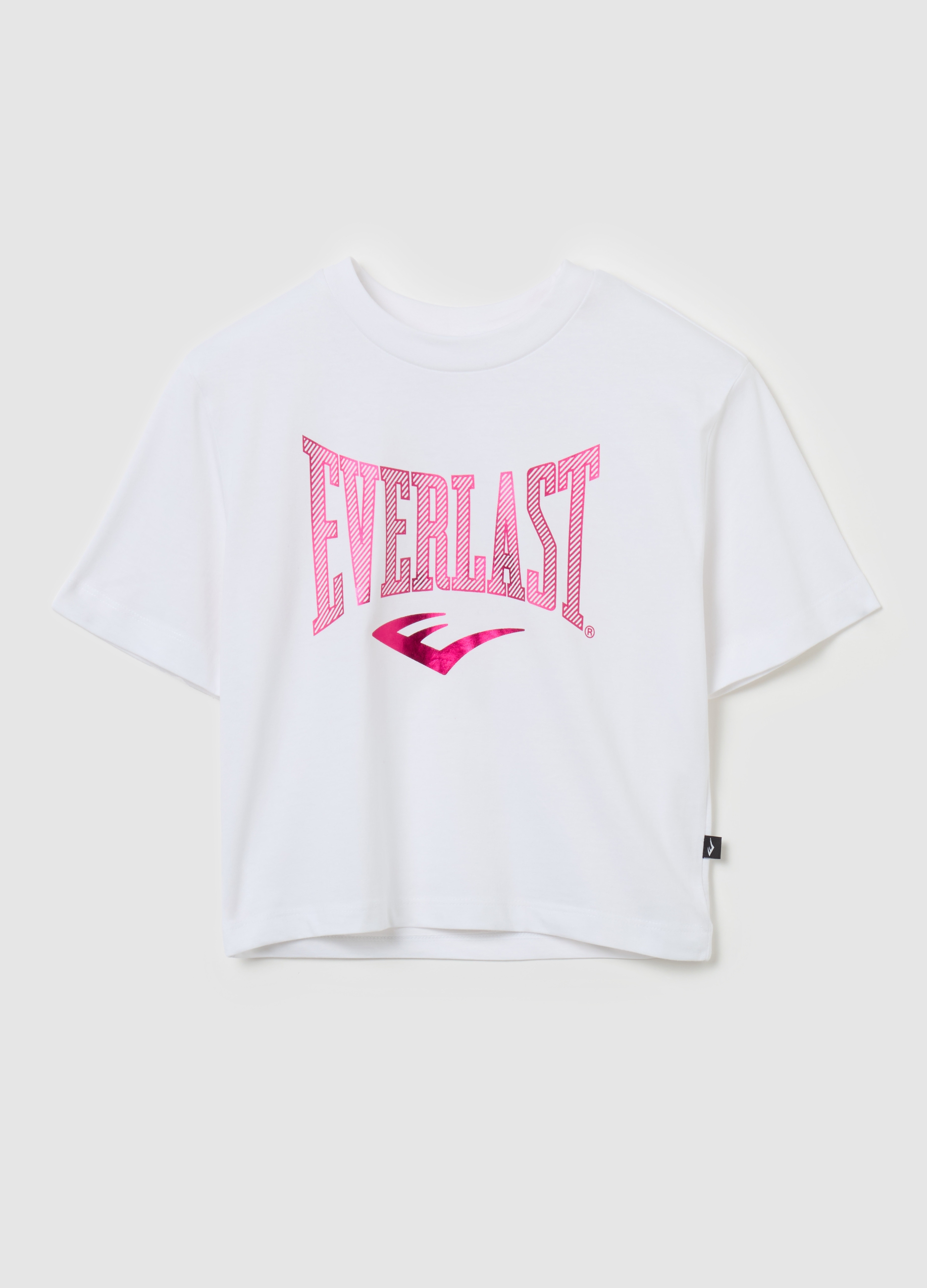Everlast cropped t-shirt with logo print for women, suitable for all seasons. Made of white color, perfect for a casual and fashionable look. The high quality fabric guarantees comfort and resistance, making it an essential garment in the wardrobe of every woman. Dress it up or down, this T-shirt will be the perfect choice for any occasion.