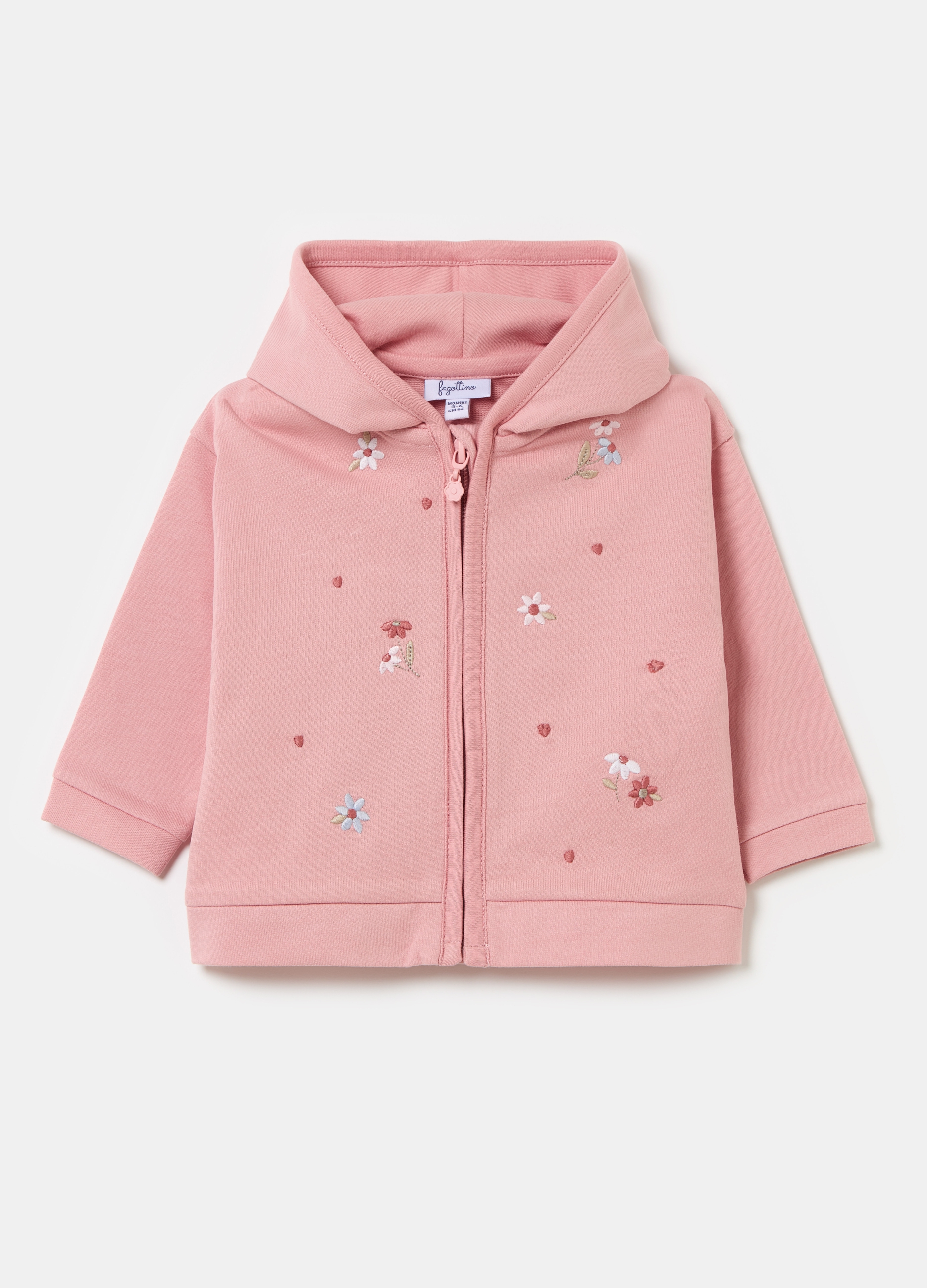 Winter casual pink Sweatshirt with hood and embroidery of flowers. Perfect for the Autumn/Winter season, this sweatshirt is comfortable and fashionable. Made of soft and warm fabric, ideal to complete your casual look. Available in sizes for women.