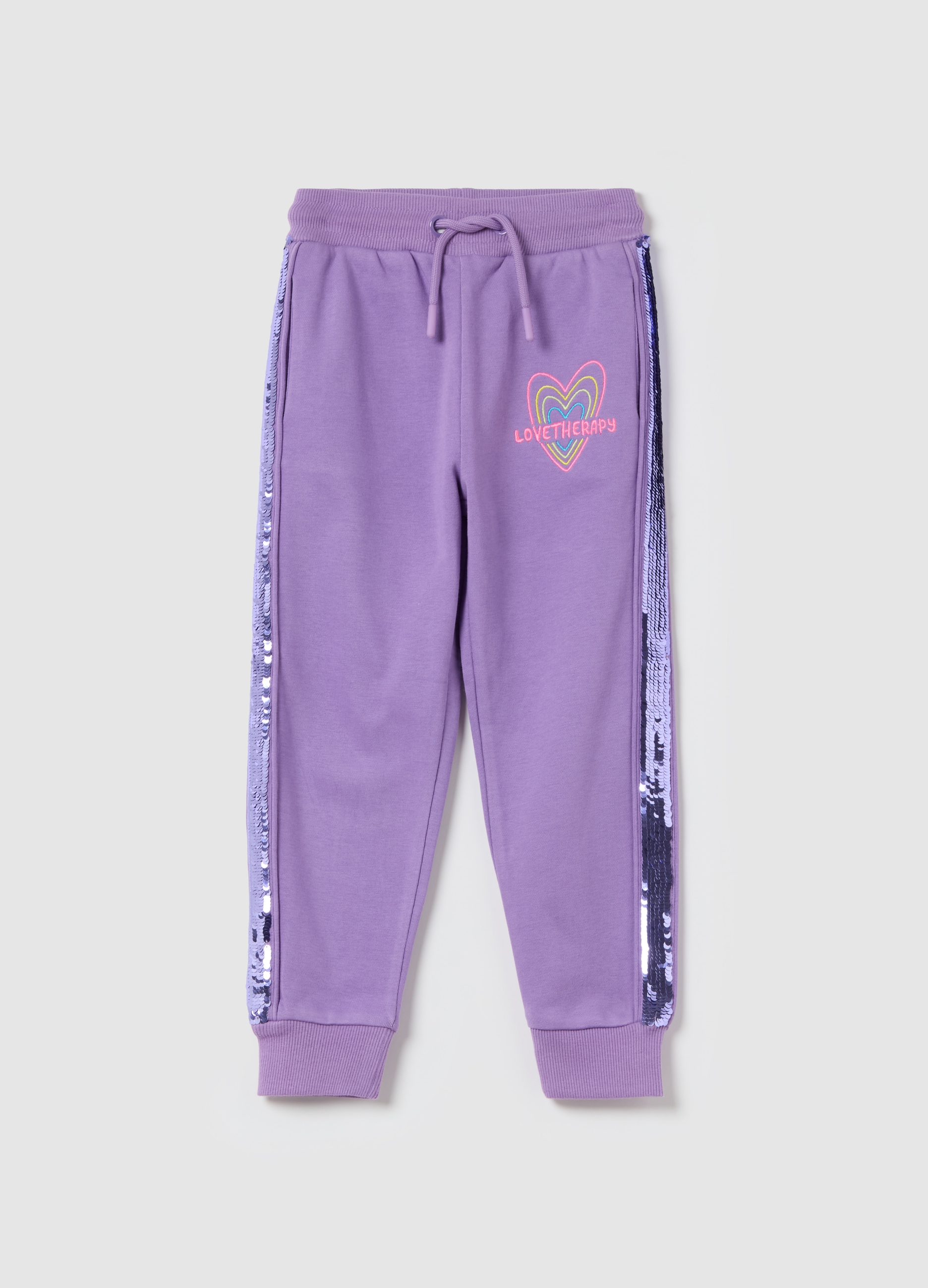 LOVE THERAPY Joggers With Sequins And Embroidery Heart Woman