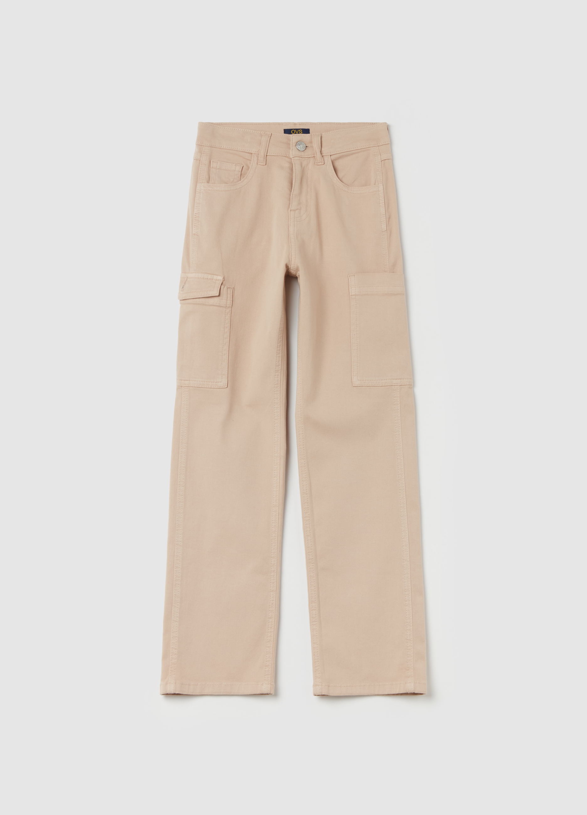 Cargo pants in elastic cotton for women of brown color perfect for every season. Comfortable and practical, ideal for a casual or sporty look. Equipped with side pockets and life drawstring for an adjustable fit. Combined with an oversize shirt and sneakers for a trendy and comfortable outfit.