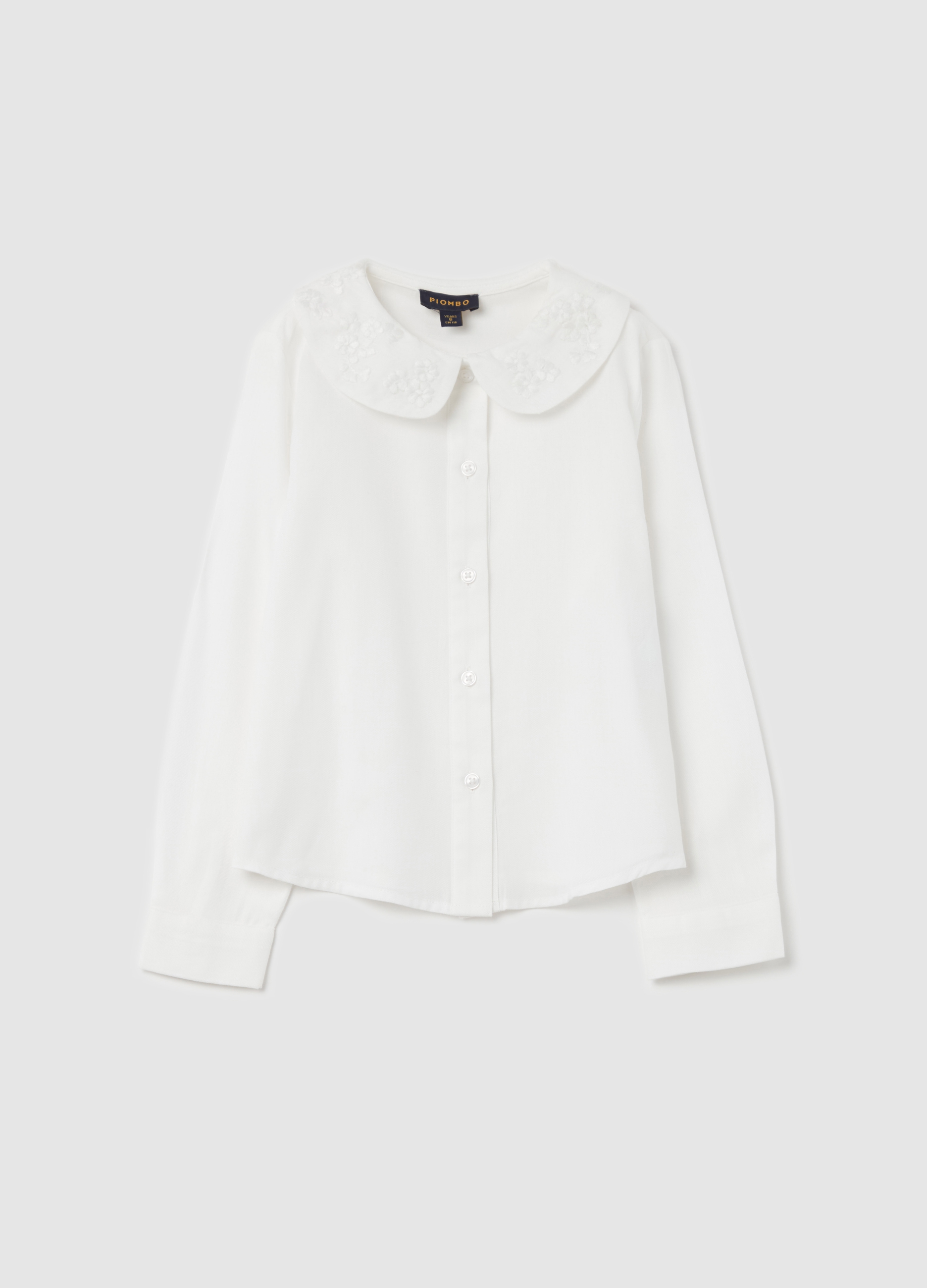 White cotton shirt with floral embroidery, ideal for spring and autumn. Perfect for a casual and feminine look. Made with high quality materials to ensure comfort and style. Add a touch of freshness to your wardrobe with this versatile garment.