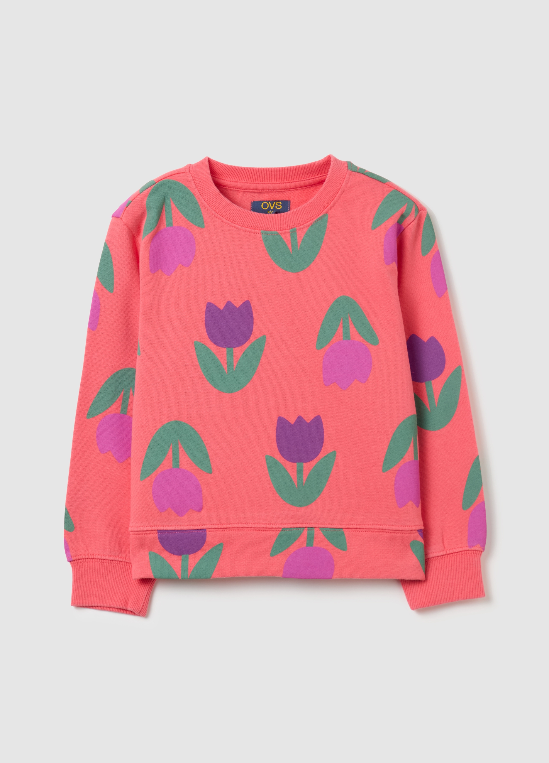Crew neck sweatshirt with all over print for woman is perfect for autumn/winter. Made of soft orange fabric, this sweatshirt is comfortable and trendy. Ideal for a casual and sporty look, to wear on every occasion.100% cotton.