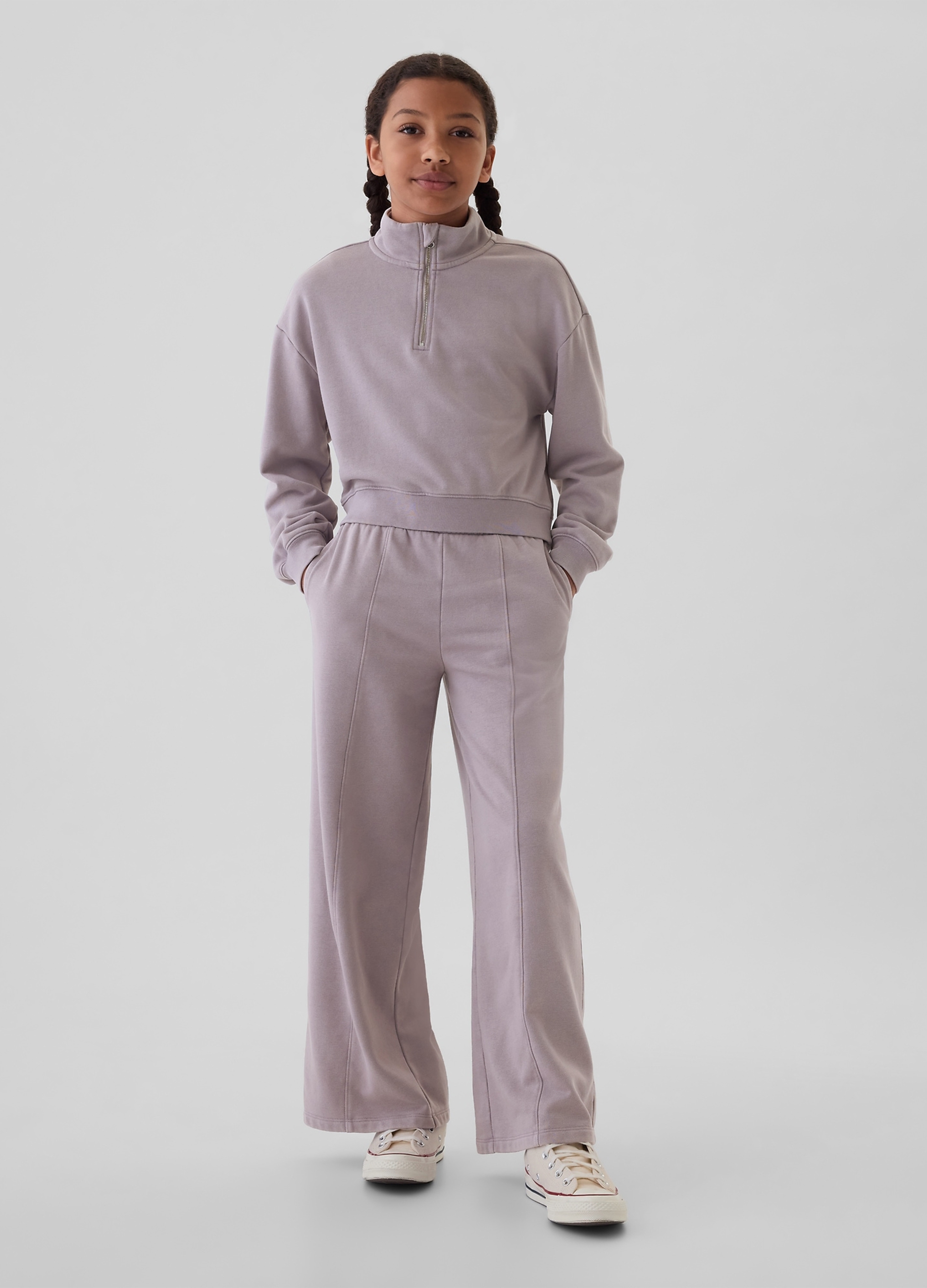 The cropped sweatshirt with half zip for purple women is perfect for autumn and winter. Made with high quality materials, it offers comfort and casual style. The short cut adds a trendy touch to your look, while the simple design makes it easy to match with any outfit. Available in size XXL/164 176, it is a versatile and fashionable garment for your clothing collection.
