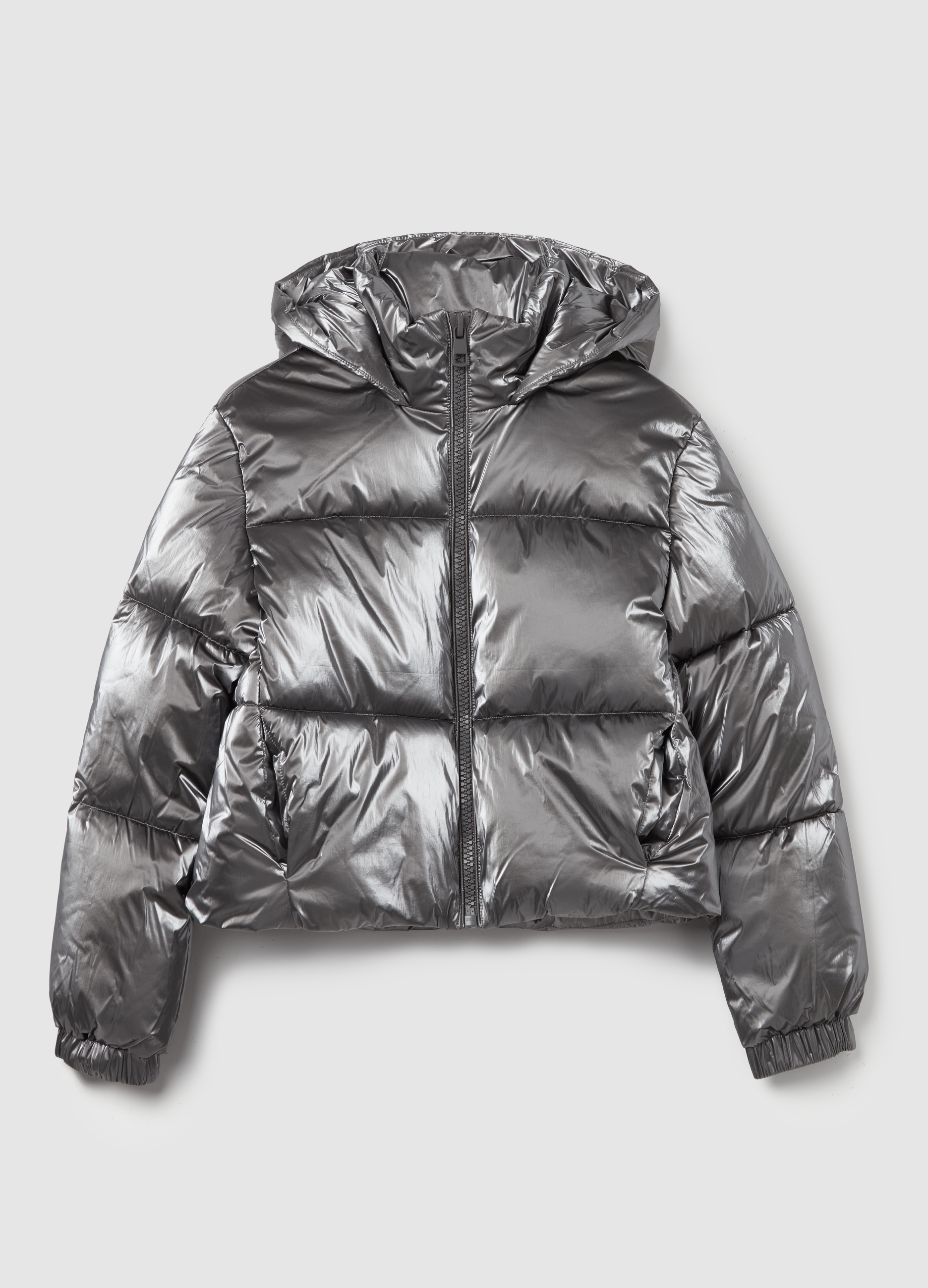 Shiny Down Jacket With Women's Winter Hood grey color is perfect for a casual and elegant look. Made with high quality materials, this garment will keep you warm during the winter. The hood adds a touch of style and protection against cold. Ideal to be worn on multiple occasions, this down jacket will be a valuable ally to face colder days with style.